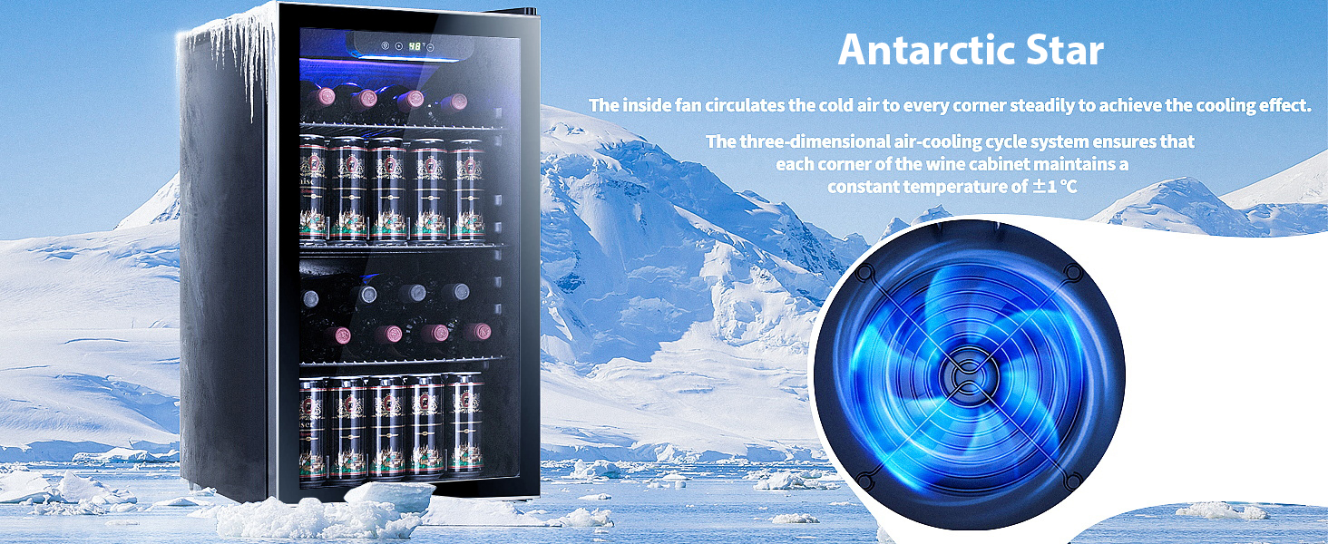 - IDEAL LIGHT and HUMIDITY: The reinforced glass door with air tight seal helps to maintain an ideal humidity level, this beverage refrigerator gives you a compact and modern sensation. Perfect for your living room. Blue soft LED interior lighting not only beautifully showcases the wine but won’t damage the wine.