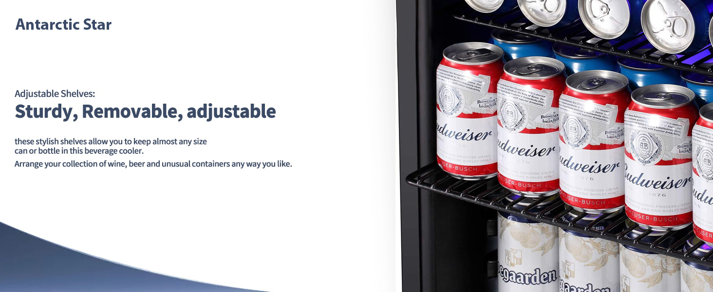 - NO VIBRATION and QUIET: Equipped with an advanced cooling system that will keep your beverages at the right temperature. With no disturbance to its natural occurring sediments. Equipped with Movable Black Shelves, Glass Door and Adjustable Leveling Legs.