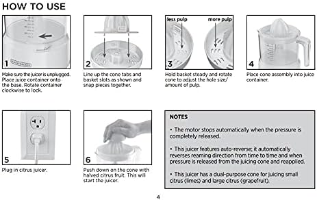 - Clear-View Juice Container - The durable plastic container is clear so you can easily see the yield of each piece of citrus.