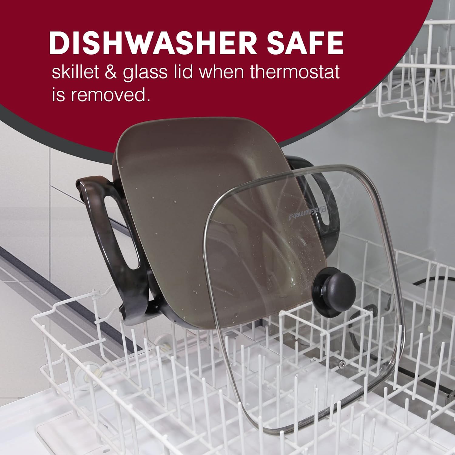 - DISHWASHER SAFE and fully immersible in your sink for fast, easy clean-up upon removal of the temperature control probe. Thick cast aluminum body resists rusting or warping for added resilience.