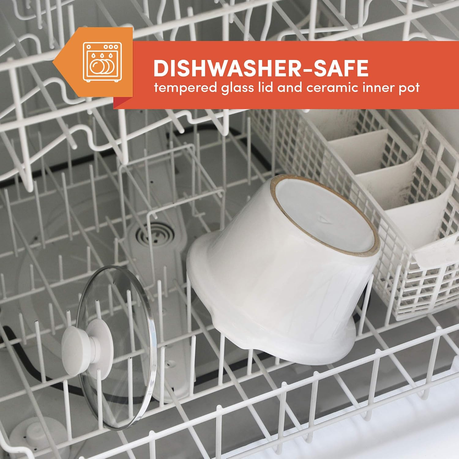 - FAST, EASY CLEAN-UP with our dishwasher-safe clear tempered glass lid and removable oval stoneware pot. The stainless steel exterior heating base can be wiped clean with a damp cloth to maintain its pristine appearance.