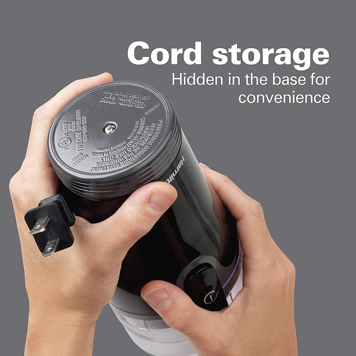 - REDUCE CLUTTER WITH HIDDEN CORD STORAGE: Hideaway cord storage at the bottom of the grinder stores the cord neatly and out of sight when it's not in use. Quieter than the leading competitor