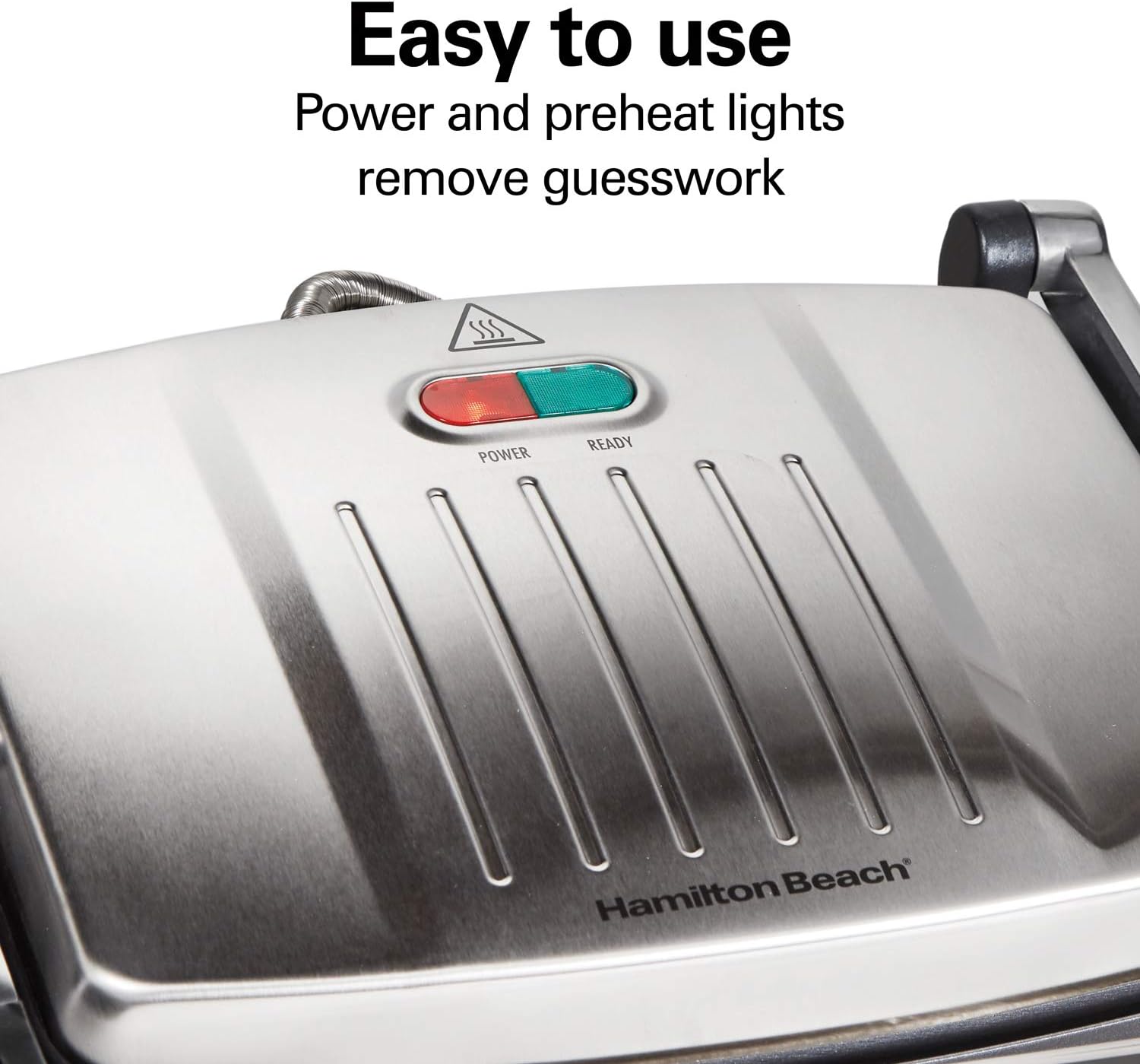 - GREEN MEANS GO: For best results, preheat sandwich maker 6 minutes before use. Built-in ready light will turn green when the press is ready to cook your sandwich.