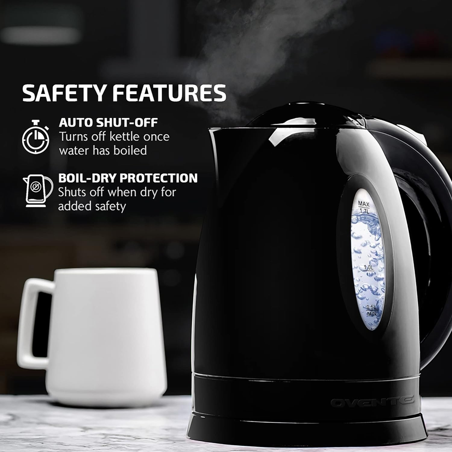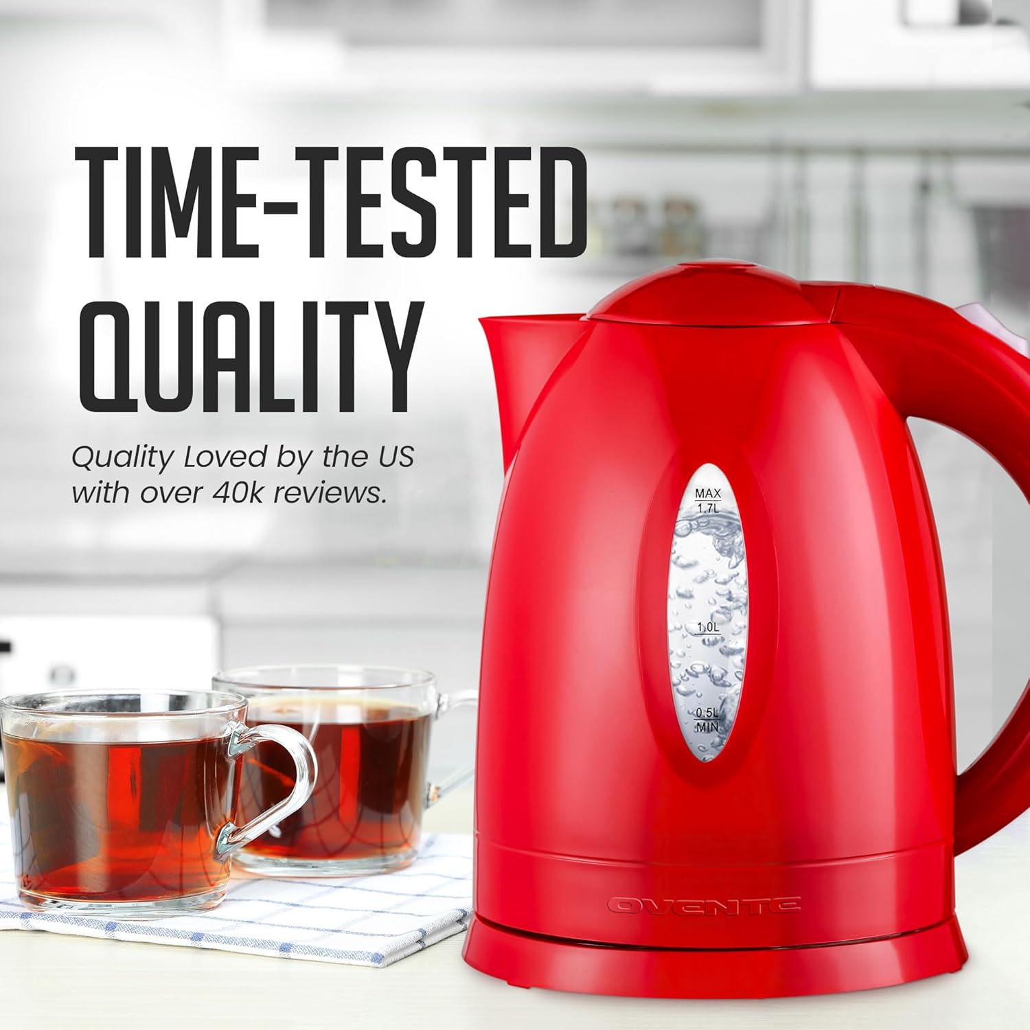 • OVENTE Electric Kettle, Hot Water, Heater 1.7 Liter - BPA Free Fast Boiling Cordless Water Warmer - Auto Shut Off Instant Water Boiler for Coffee & Tea Pot - White KP72W