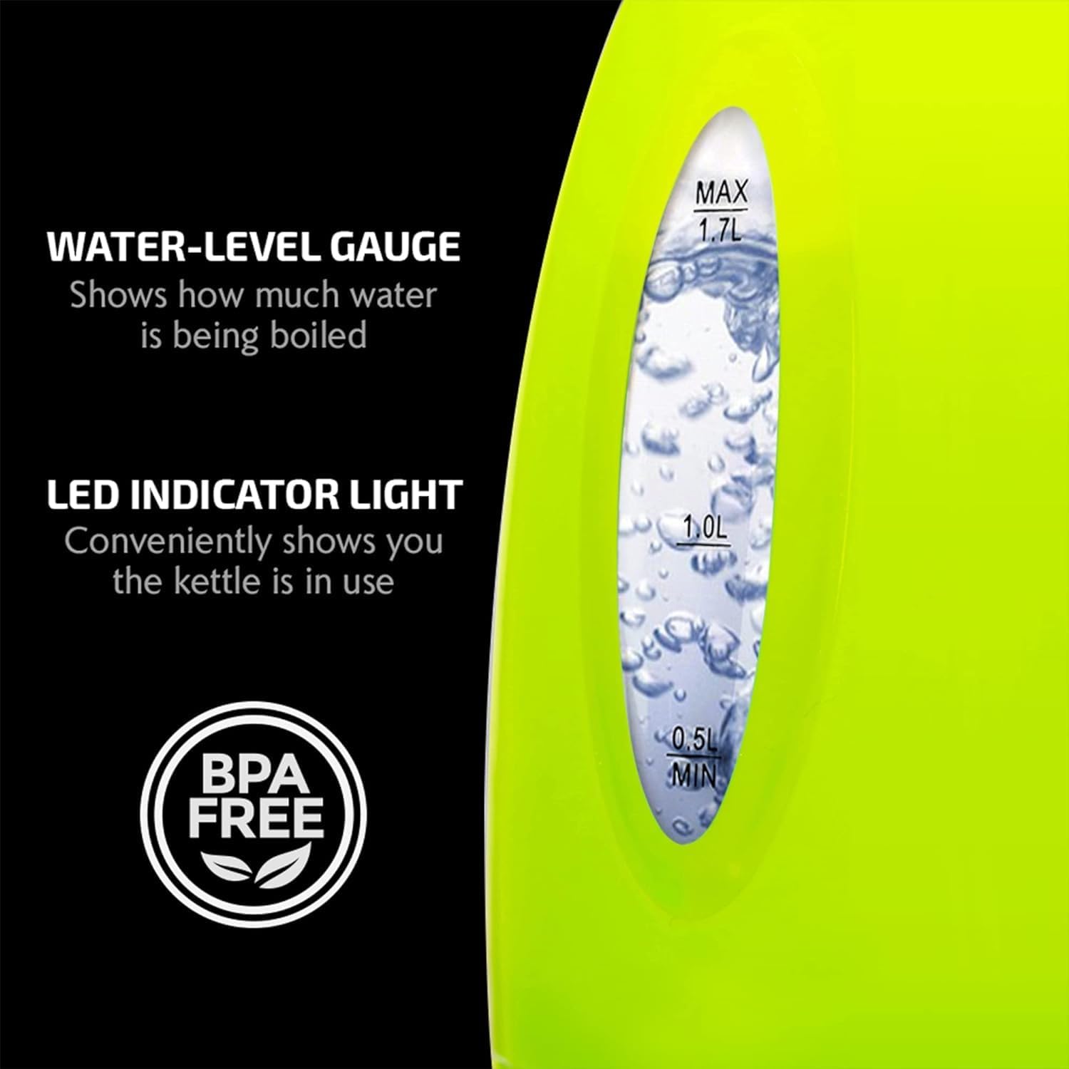 • Boils Water in Flash – This electric kettle operates on 1100W (120V) and boils a full 1.7L of water in minutes! It is 50% more efficient than traditional stovetop kettles in reducing your daily electricity use.