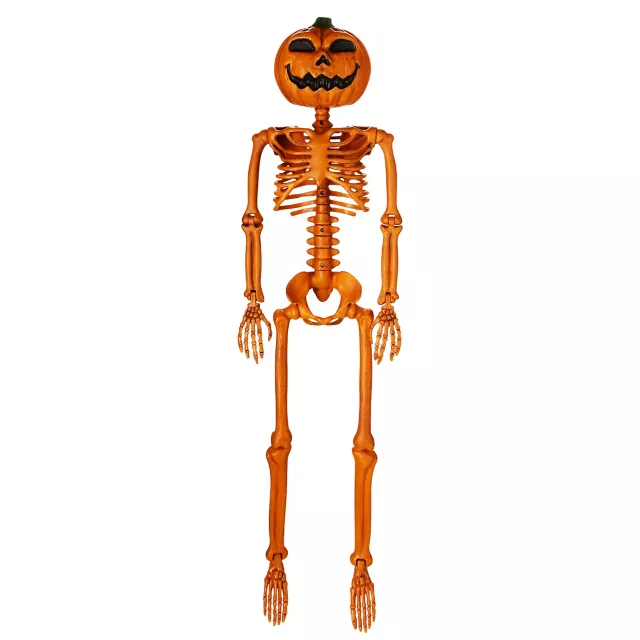 Make your Halloween decor stand out from the rest in the neighborhood when you decorate with this Rotten Pumpkin Skeleton Hanging Prop. Featuring a pumpkin head and skeleton body, once you hang him up in your home your guests will never know where he'll pop up next!