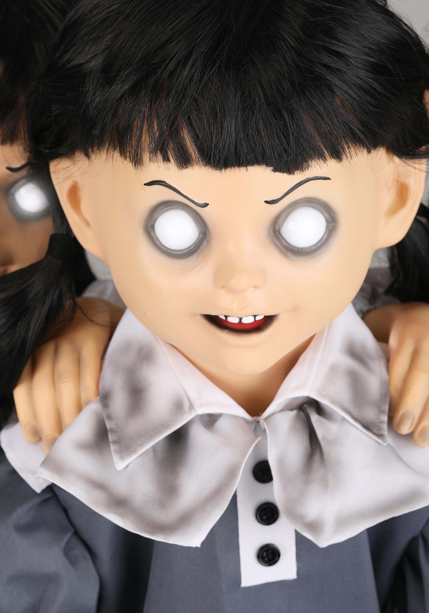 But wait, there's more! These devilish triplets are not just static decorations. Oh no, they come to life with spine-tingling animatronic movements. Watch in awe as their heads swivel from side to side, their arms reach out to grab unsuspecting victims, and their mouths open wide to emit blood-curdling screams. These evil siblings are sure to give your guests a heart-stopping scare!