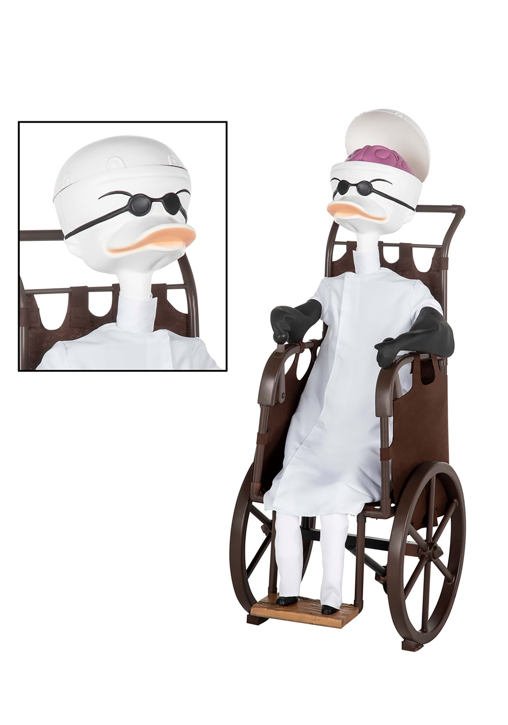 This animatronic decoration perfectly captures Dr. Finkelstein's iconic look. Seated in his brown wooden wheelchair with a high backrest and large rear wheels, he's instantly recognizable. The detailed design ensures that every feature, from his white lab coat to his eerie black gloves, stays true to the beloved character.
