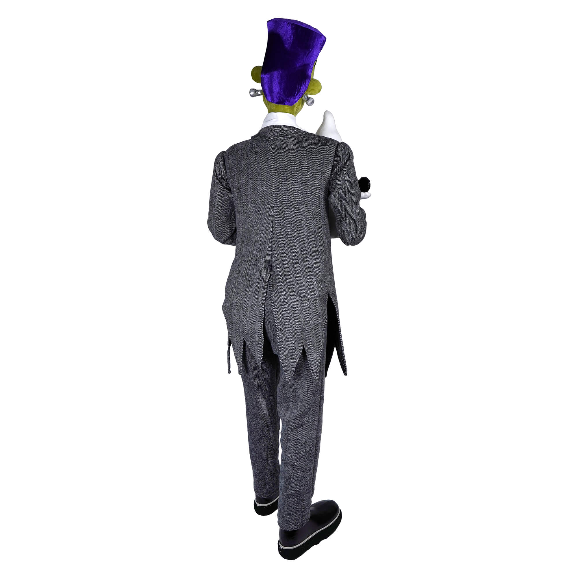 Frankenstein's sartorial elegance is nothing short of impressive. His flannel Houndstooth pants, vest, and morning coat exude a timeless sense of style, while the green buttons carefully match his iconic skin color. Of course, the classic forehead stitches and bolts on the side of his neck complete his signature look, bringing this legendary figure to life in all his monstrous glory.