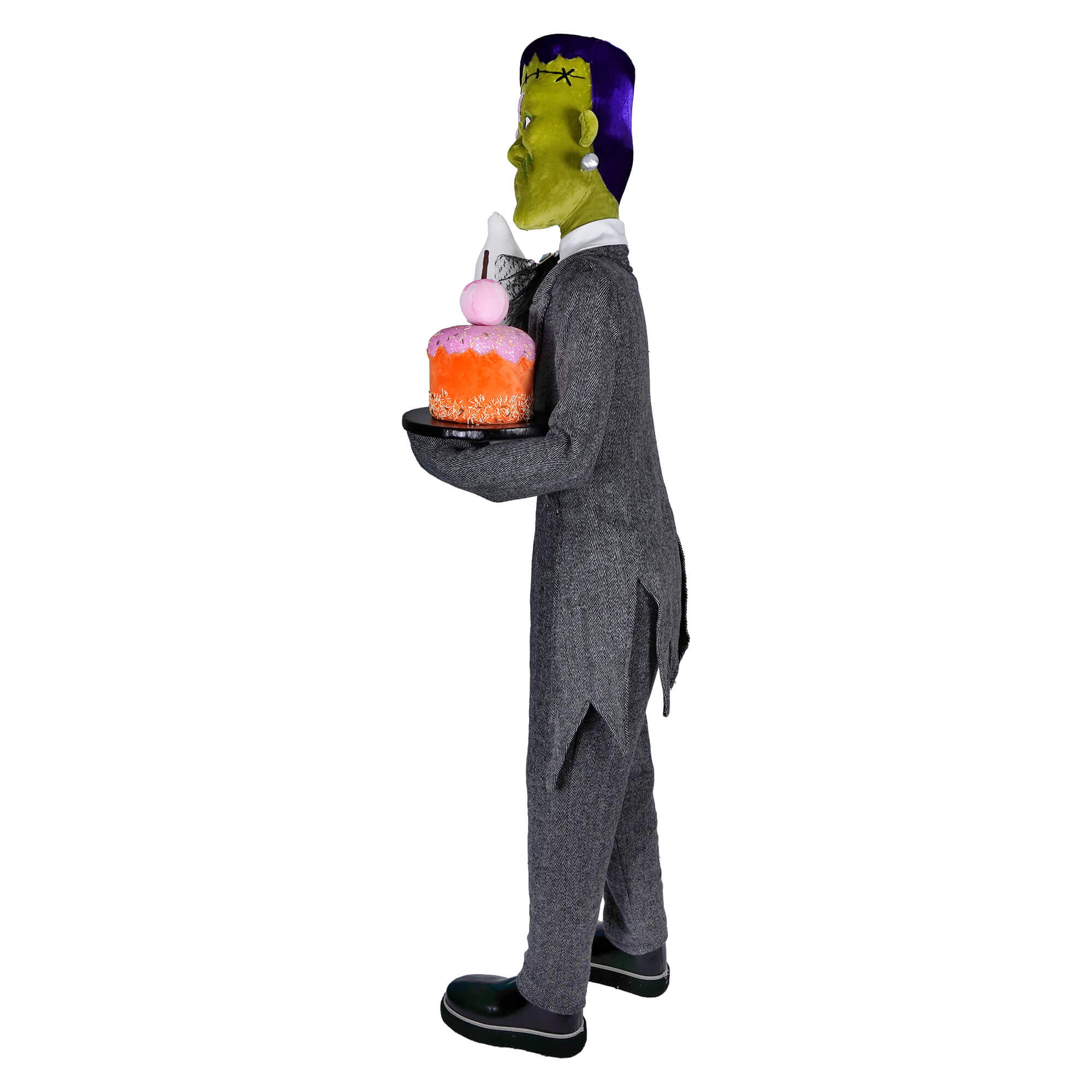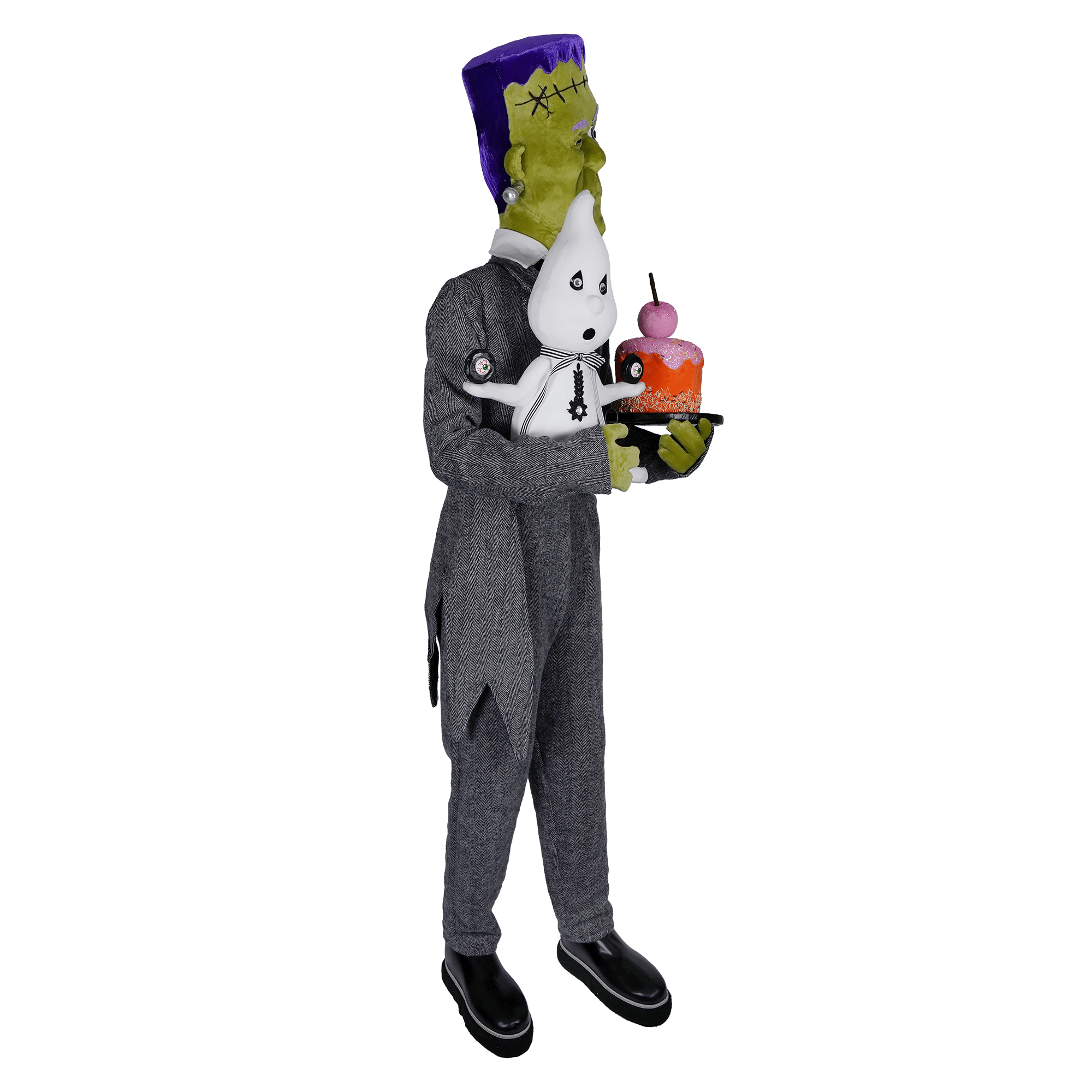 We have found a uniquely monstrous way to greet your guests at Halloween! The 5.5-foot Frankenstein Holding Ghost & Cake is a life-size figure that exudes both mystery and charm. Standing tall and imposing, this dapper Frankenstein figure is ready to make a statement at your Halloween soiree and welcome guests alongside his Bride.