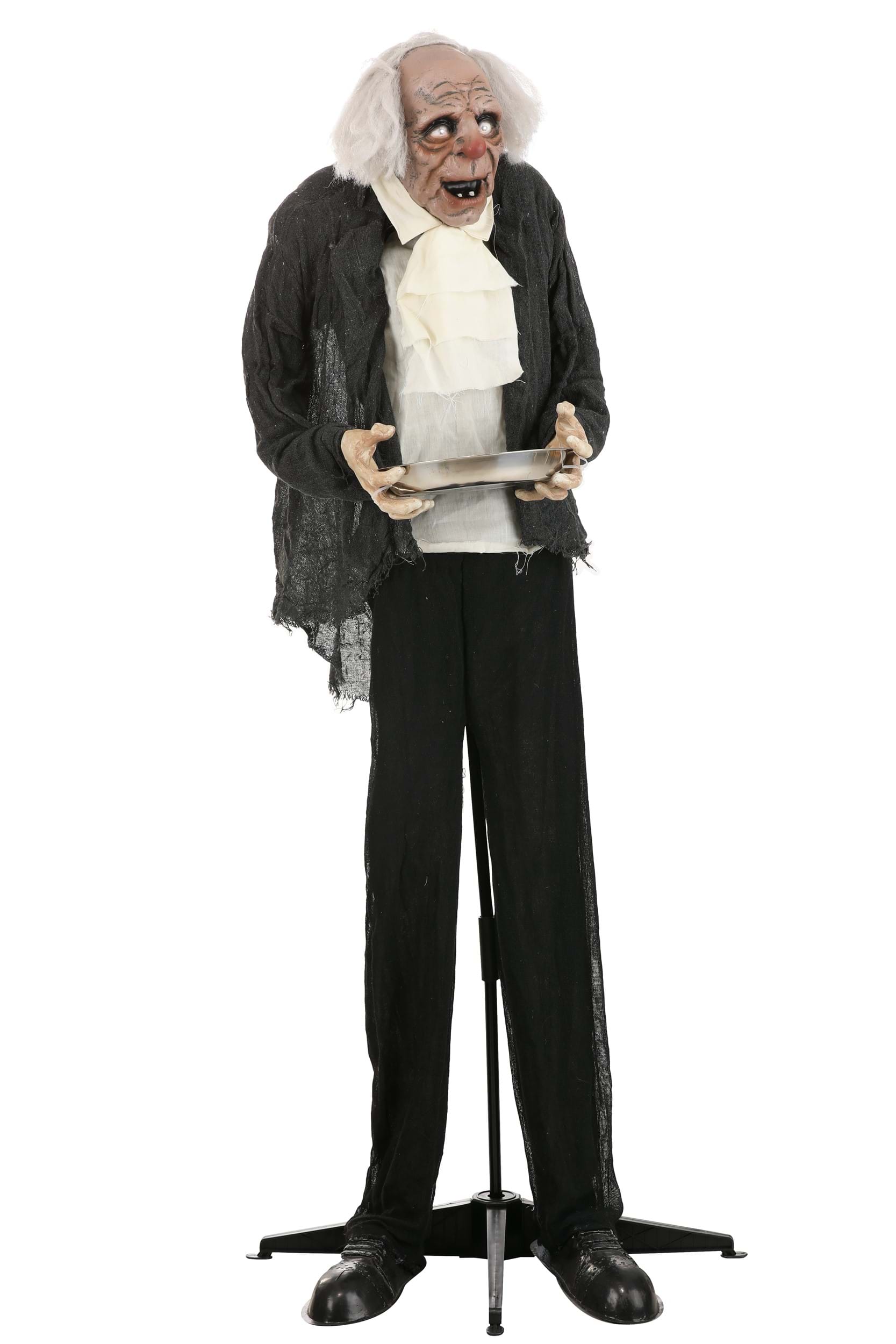 This life-size old man greeter is designed to give your Halloween display an eerie touch. Crafted with meticulous attention to detail, this animatronic decoration features a weathered face with deep wrinkles, hollow eyes that seem to follow your every move, and a mouth that utters creepy phrases. Its tattered clothes and hunchbacked posture add to the spine-chilling effect, making it a must-have for any haunted house.