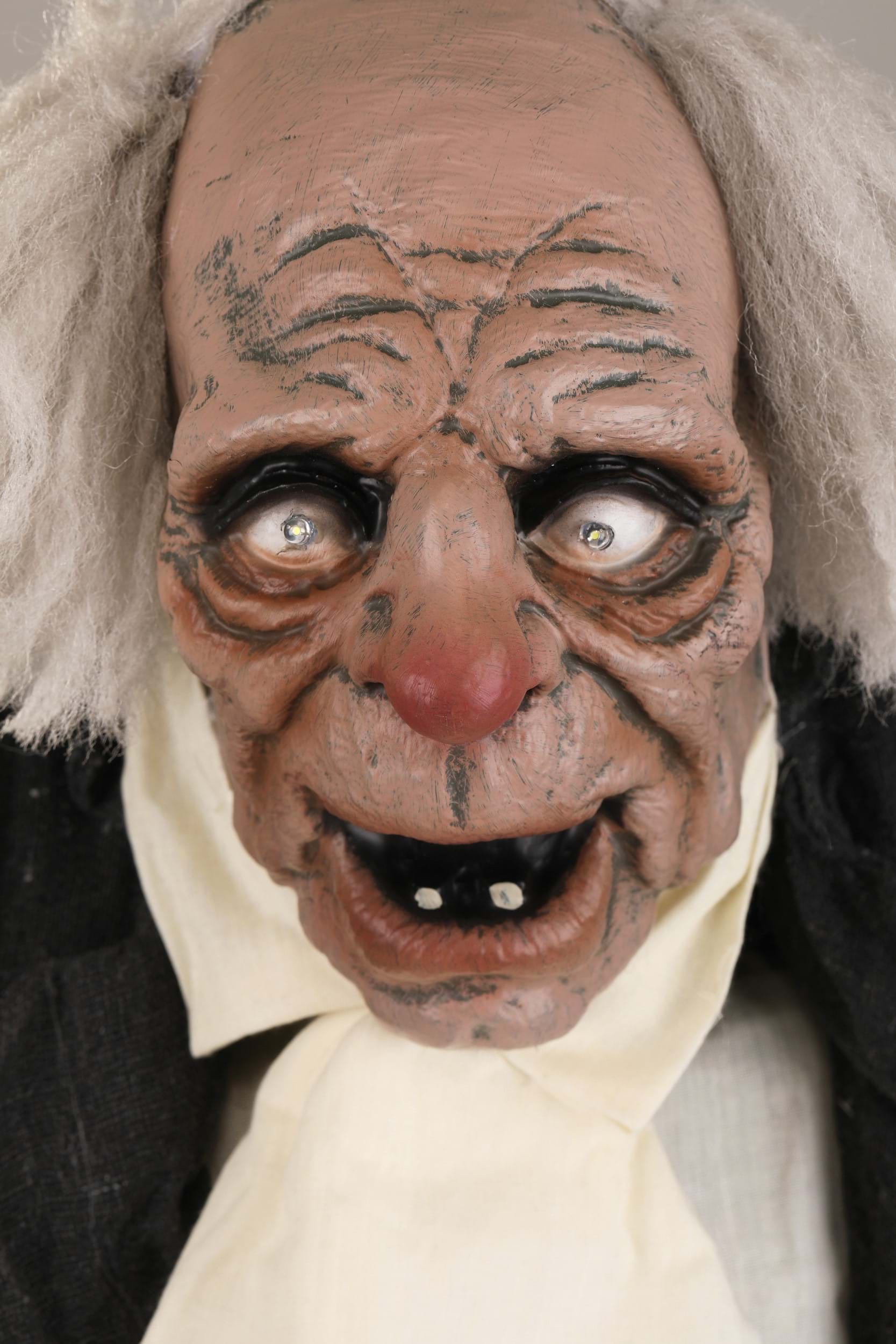 Prepare to give your guests a fright they won't soon forget! This animated old man greeter is sound-activated, meaning it comes to life as soon as someone approaches. Watch as it turns its head, cackles wickedly, and delivers spine-tingling phrases that will send chills down your spine. With its realistic movements and bone-chilling sound effects, this greeter will leave your guests trembling with fear!