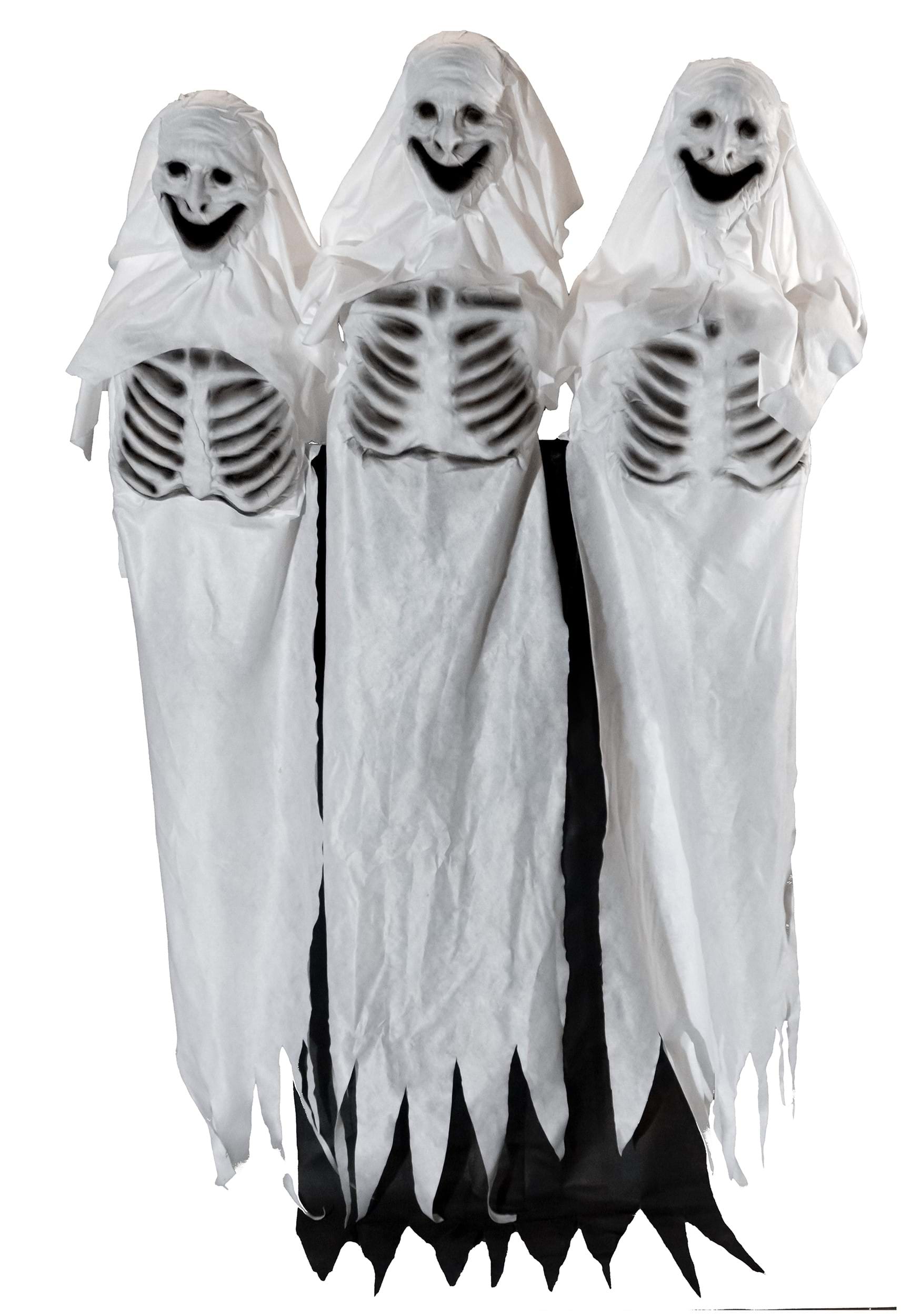 Prepare to be mesmerized as the Ghostly Trio comes to life! When activated by sound or by the "try Me" button, these ethereal beings sway sideways, their translucent forms hovering in the air. And that's not all �� they emit spine-chilling, ghostly noises that will send shivers down your spine and make your hair stand on end. These supernatural sound effects will have your guests screaming with delight!