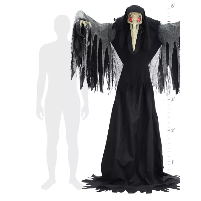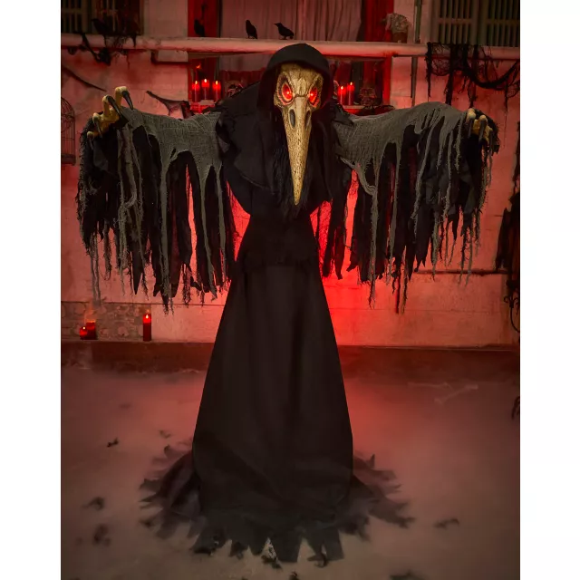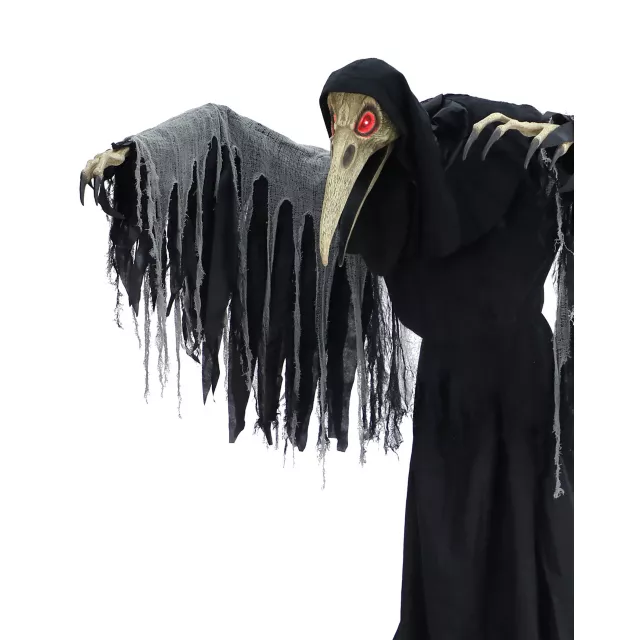 At six foot tall, the Lord Raven animatronic will tower over guests in your home. Watch as it lifts its arms and lowers its head to gather a closer look at its next victim. With light-up LED red eyes and tormenting voice lines, Lord Raven will spook you to your core!