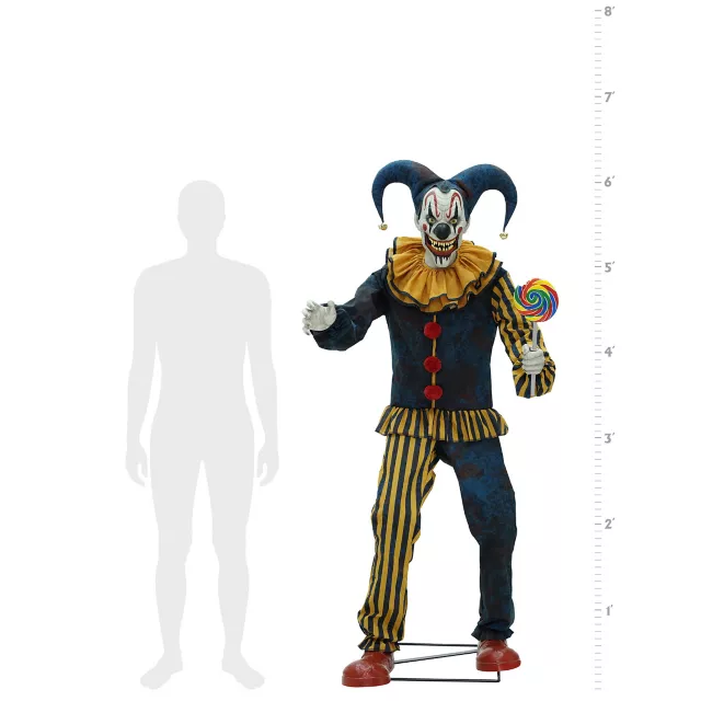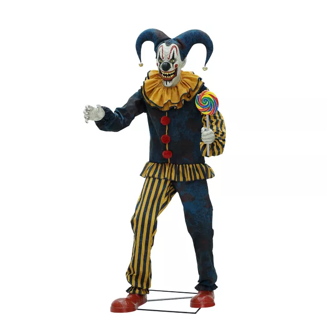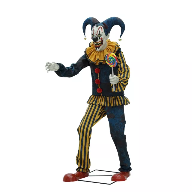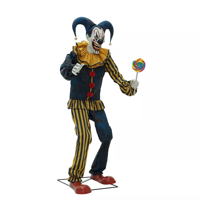 Six-foot-tall Nibbles the Clown is equipped with motion-tracking sensor technology that allows him to spot and follow anyone in his field of view. If it feels like he’s really watching you, perhaps he is. In addition to a moving head, Nibbles the Clown features a moving right arm and mouth. When Nibbles begins speaking over haunting carnival music, you’ll feel the full impact of his menacing presence! Add Nibbles the Clown to your collection of animatronics to experience real horror in motion.