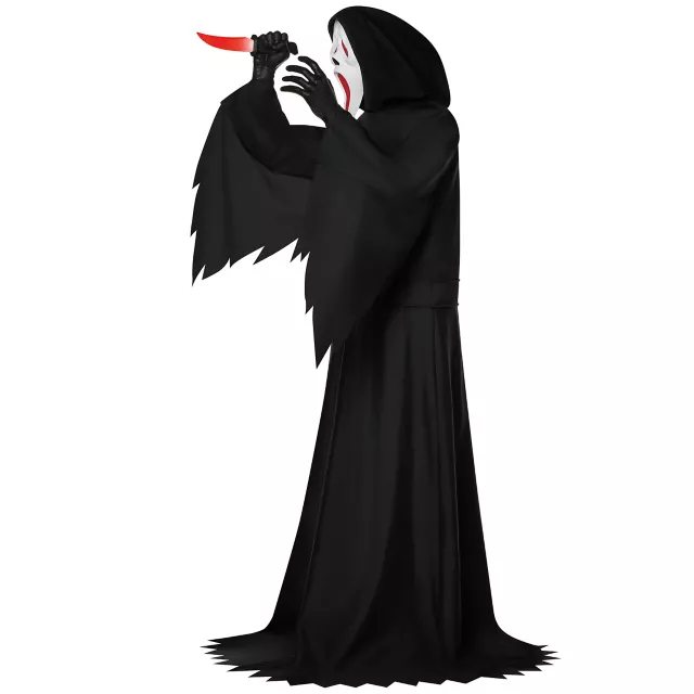 Next time you hear your phone ring, you’d better think twice about who’s on the other end of that call. If it’s Ghost Face, then you’re in for a true horror show. Modeled after one of the most infamous slasher villains of all time, this Static Ghost Face Animatronic stands at six feet tall and is here to turn your nightmares into reality. Featuring posable arms for a lifelike effect, this product will have the whole neighborhood shivering in fear. Try not to run away when this terrifying tormenter’s mask glows with red LED lights. The horror icon also plays slashing and screaming sound effects for the ultimate chilling experience. When you see that iconic mask and knife lurking in the distance, you’ll know it’s only a matter of time before Ghost Face starts his killing spree.