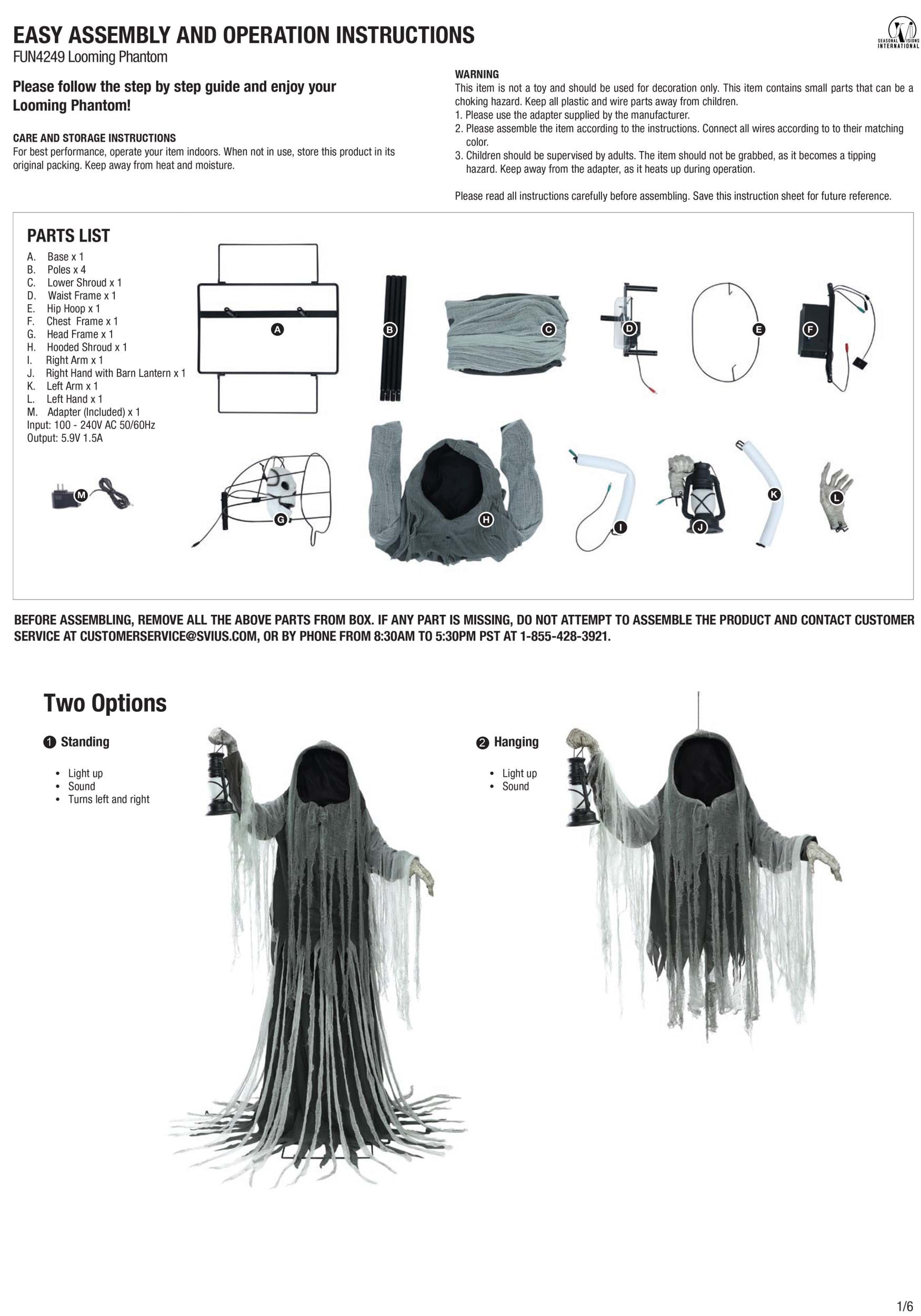 Please note that the plug on this item may require an adapter (not included) for use outside the United States. So, get ready to embrace the darkness and let the Looming Phantom unleash its bone-chilling presence in your haunted Halloween haven.