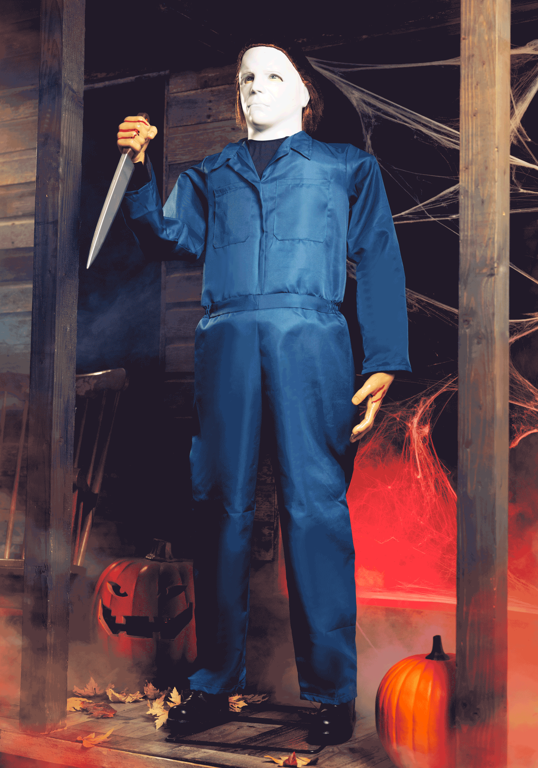 Constructed with a sturdy metal frame, this prop is designed to stand tall and stable, whether indoors or out. Its robust construction ensures that Michael will remain a fearsome figure throughout the Halloween season, ready to deliver scares at every turn.
