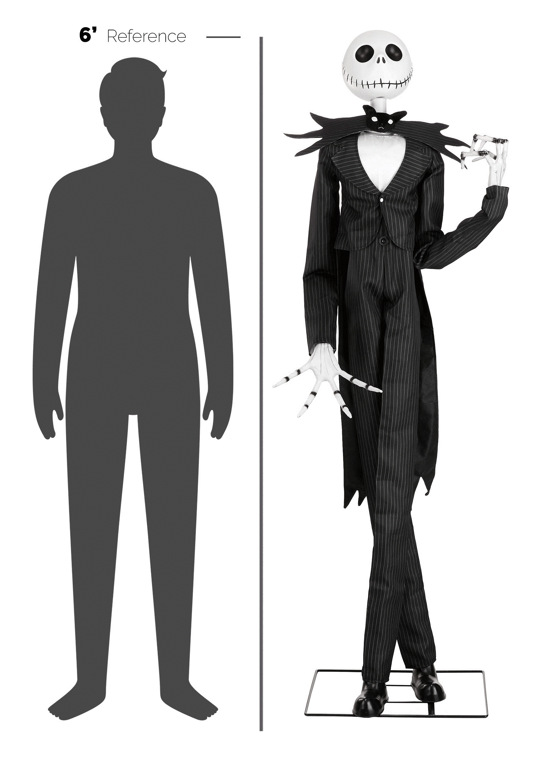 Crafted to look just like the Pumpkin King himself, this animatronic features Jack Skellington in his classic black suit, complete with a bat-shaped bowtie. The realistic attire and meticulously molded head perfectly capture Jack��s charmingly spooky appearance, ensuring an authentic look that fans of the movie will adore.