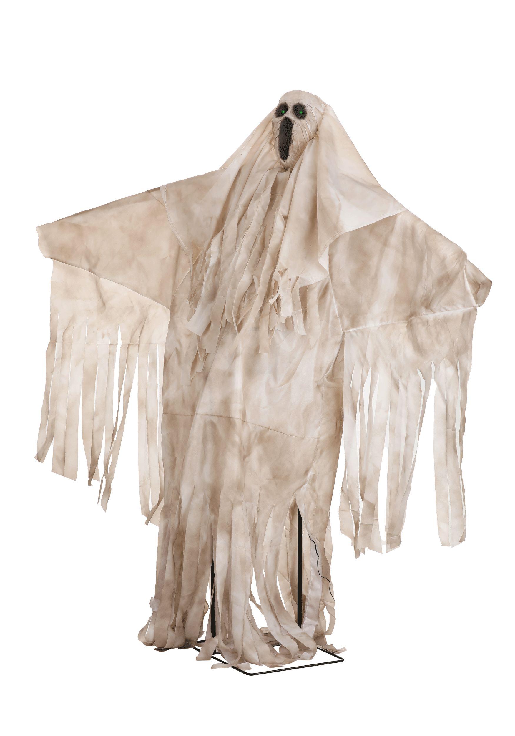 Standing at a towering 6 feet tall when assembled, this ghoul is sure to give your guests a fright. Its metal frame provides durability, while the foam-covered arms and head add a touch of eeriness. The fabric robe drapes gracefully, adding an air of mystery to this terrifying figure.
