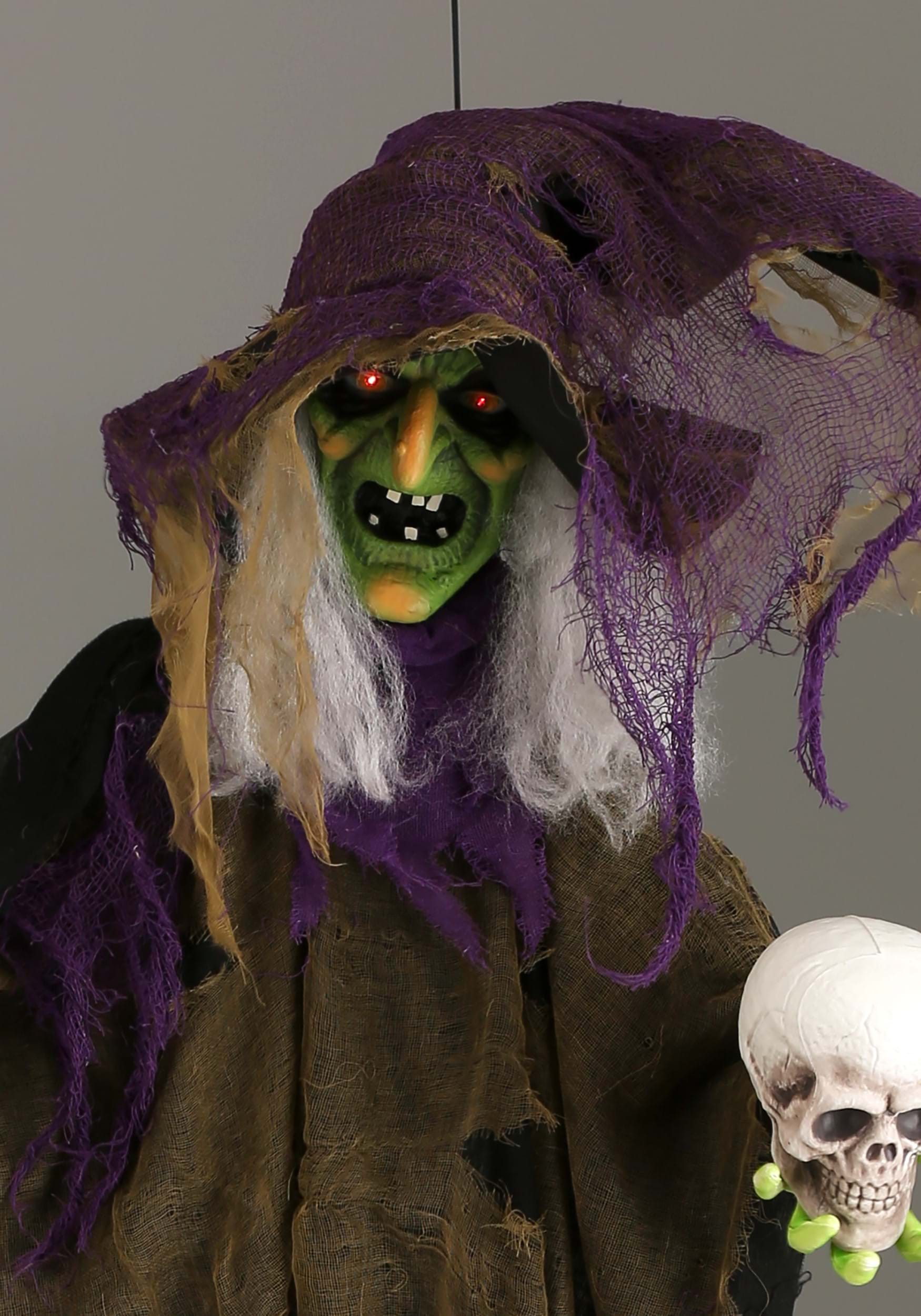 Don't miss out on this must-have Halloween decoration! Hang up this 6 Foot Hanging Witch Animatronic Decoration and let the scares begin. Get ready to cast a spell of fear and delight on all who enter your haunted domain!