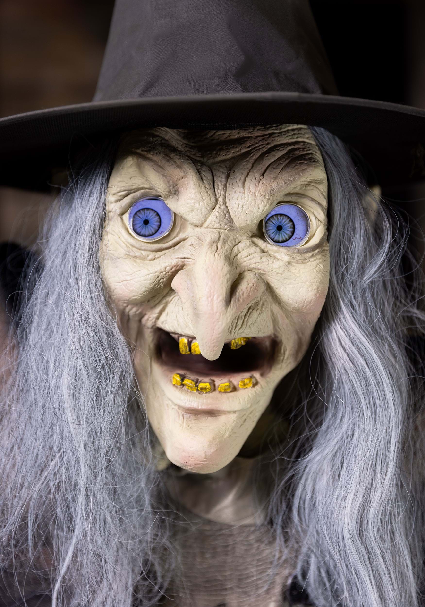 With a flick of a switch, the witch's piercing eyes come to life, casting an eerie glow that will send shivers down your spine. But that's not all - this wicked witch lunges forward and speaks 5 bone-chilling phrases, making your heart skip a beat with every word. Whether you choose to activate her continuously, by motion, or with a step-pad, this wicked enchantress is sure to add an extra dose of fright to your Halloween festivities.