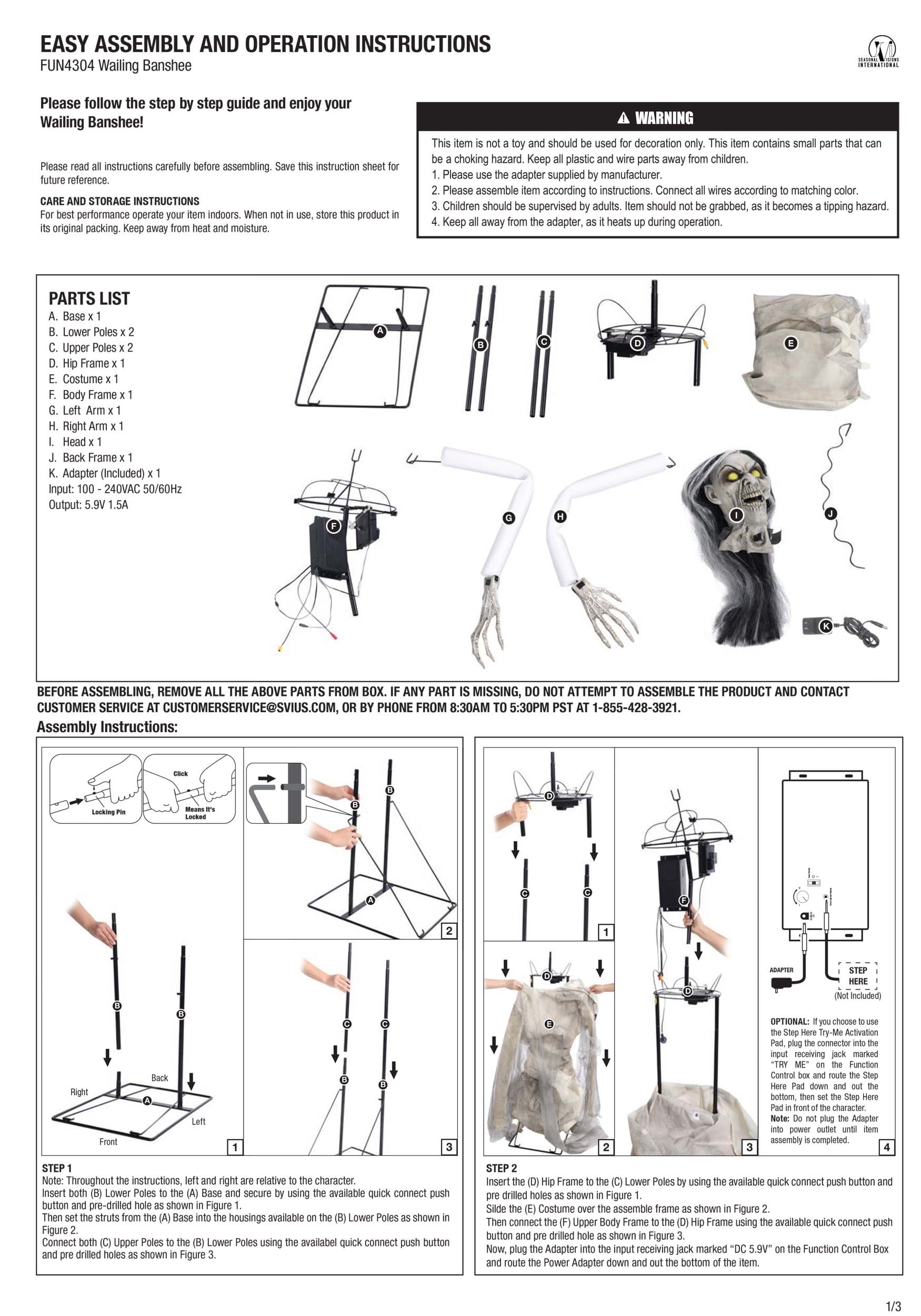 Please Note: The plug on this item may require an adapter (not included) for use outside the United States. Get ready to unleash terror with the 7FT Wailing Banshee Seasonal Visions Int Animatronic Prop and make this Halloween the spookiest one yet!