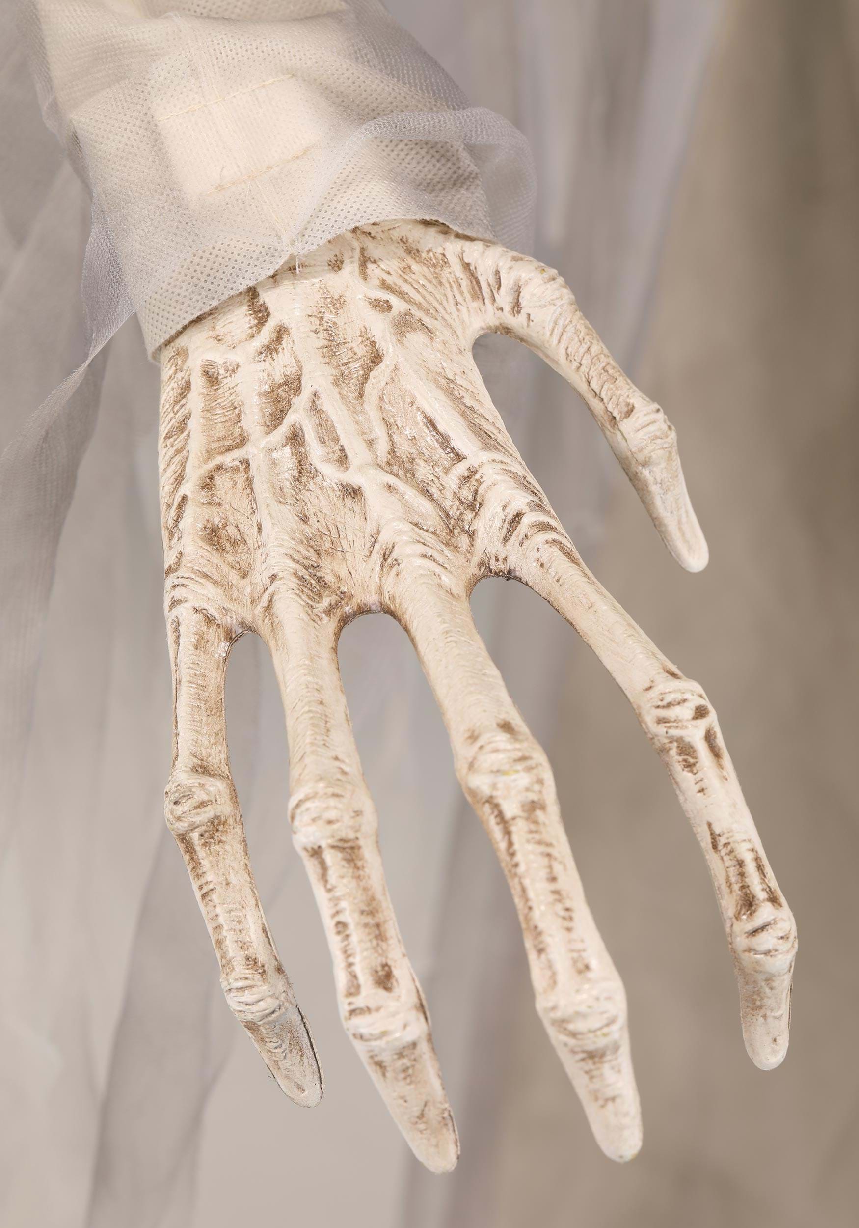 Standing at an impressive 7 feet tall, this animatronic prop is a true masterpiece of terror. The metal frame ensures durability, while the molded plastic head and hands give it an eerily lifelike appearance. Dressed in a flowing fabric robe, the Wailing Banshee is ready to frighten anyone who crosses its path.