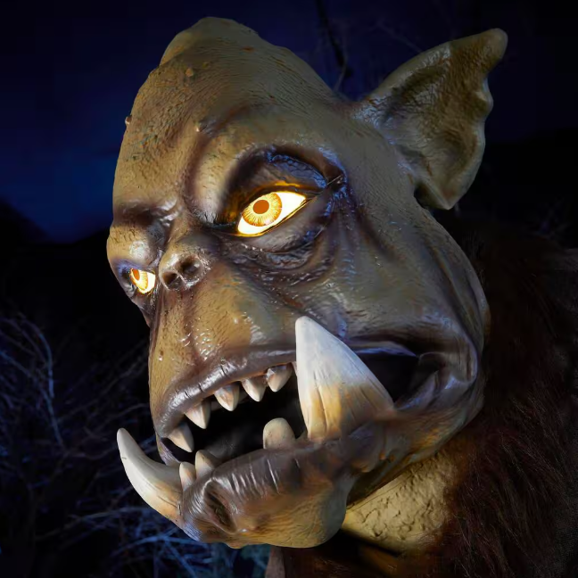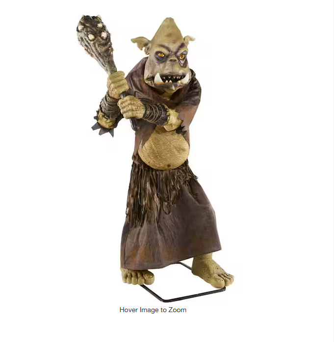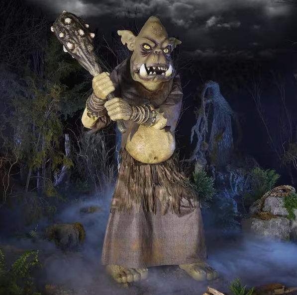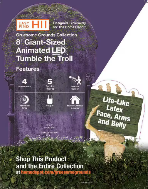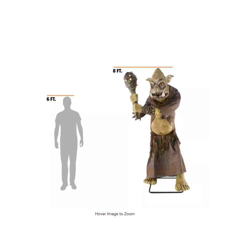 Straight from the woods comes this giant 8-foot animated LED tumbling troll toy. This unruly behemoth is motion-activated and speaks five different phrases. Watch its head, mouth, body, and club-wielding arms move as its eyes angrily change from yellow to red. Includes a plug-in power adapter, a 6-hour on/18-hour off timer, a volume control, and an additional light function switch. Everyone on your street will be terrified and in awe of this giant.