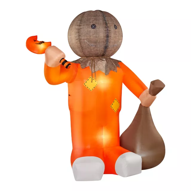 Create a Halloween setup that can't be beat when you display this officially licensed Sam Inflatable Decoration! Towering at 8 feet tall, this inflatable prop is complete with built-in LED lights and right arm stabbing motions, making it a must-have for fans of Trick 'r Treat.