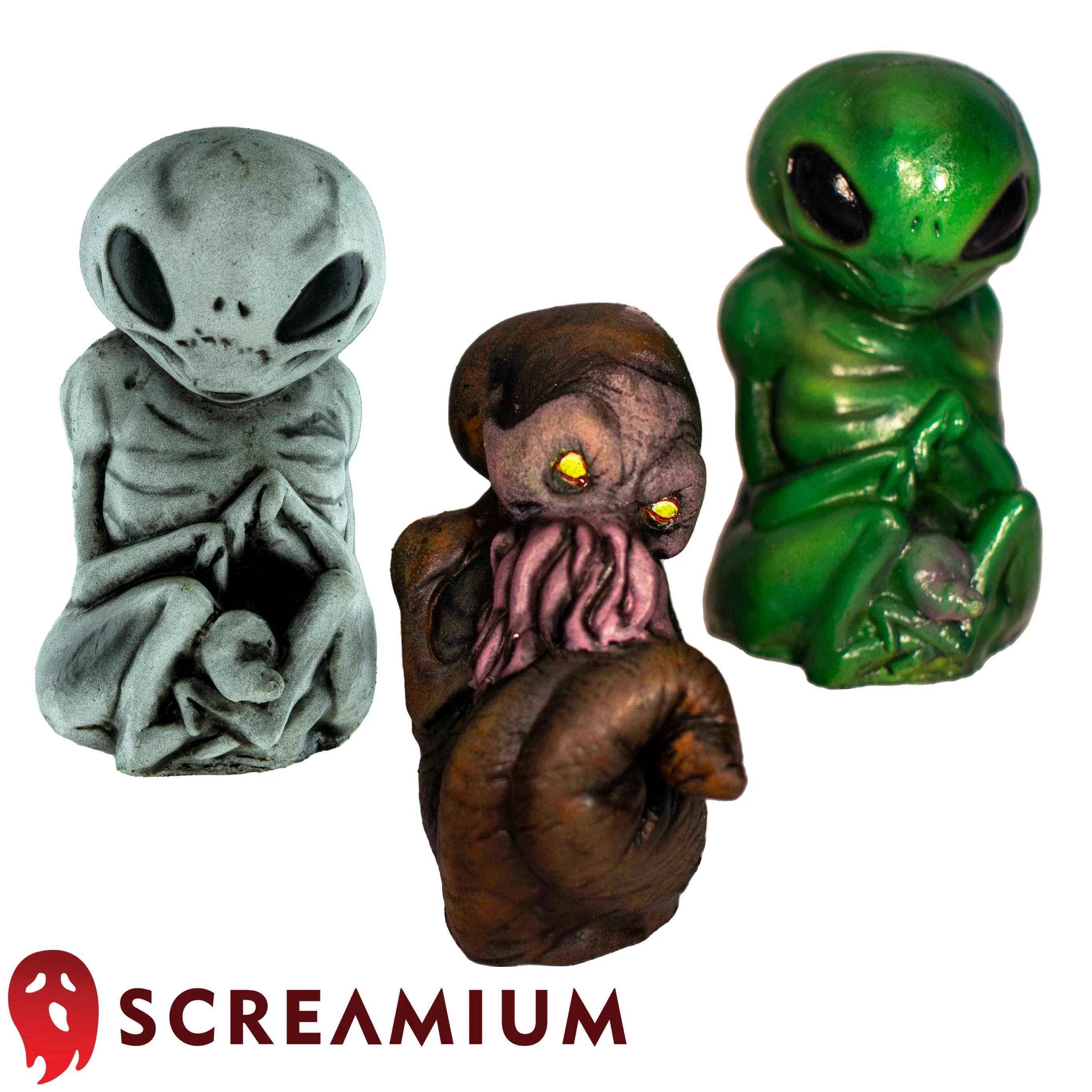 An eclectic assortment of alien embryo monster props makes a perfect display for your Halloween party or horror movie night! Simply fill the included plastic jar with water to create the alien laboratory effect of the creatures floating in formaldehyde. Perfect for fans of the Alien movie franchise or Xenomorph lovers in general!
