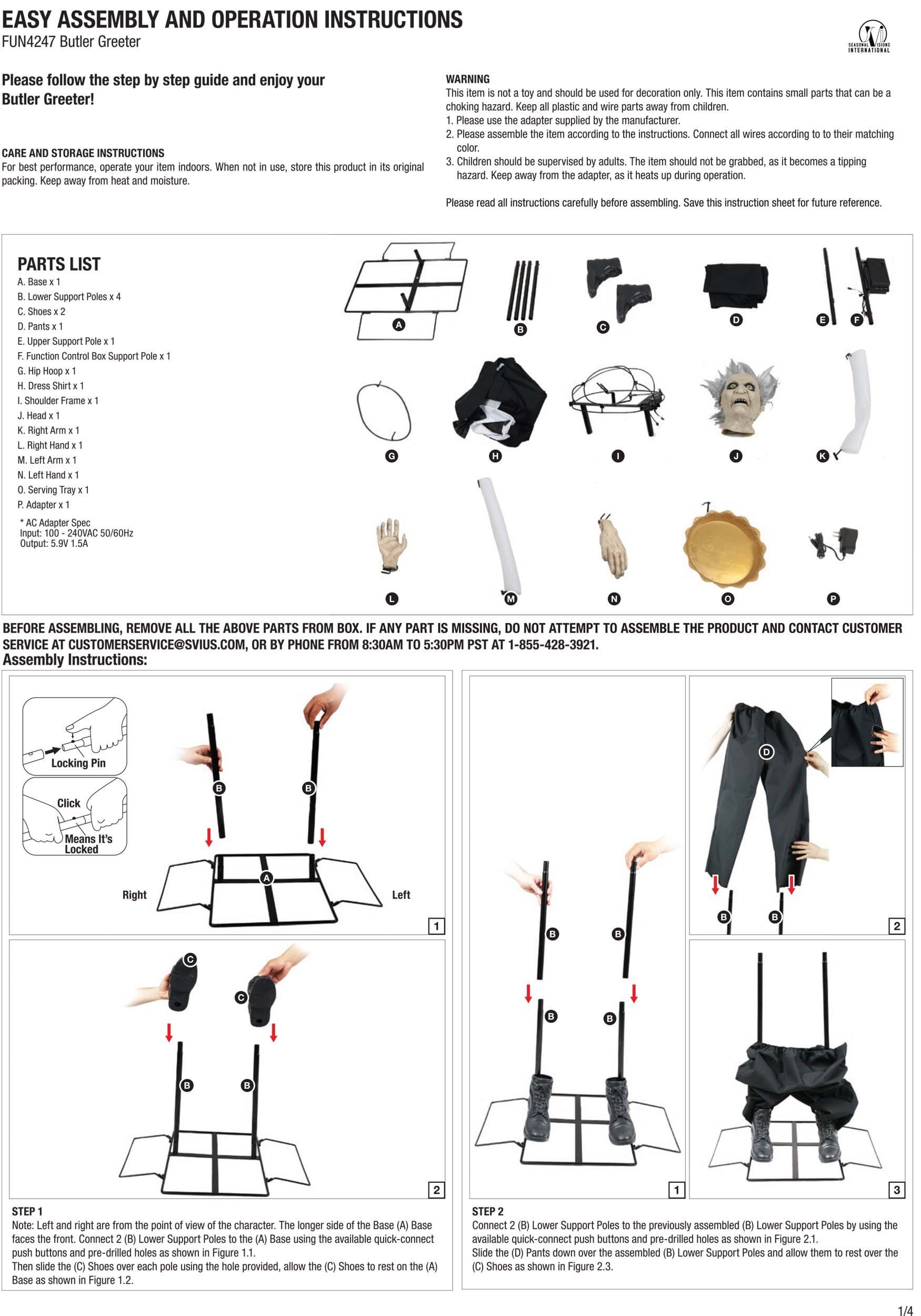 Adjust the volume of the spine-tingling sounds by simply turning the knob on the control box. Whether you want a subtle spook or a bone-rattling scream, you're in control. The Evil Animated Greeter Butler conveniently plugs into any standard US wall outlet, making setup a breeze. Please note that the plug on this item may require an adapter (not included) for use outside the United States.