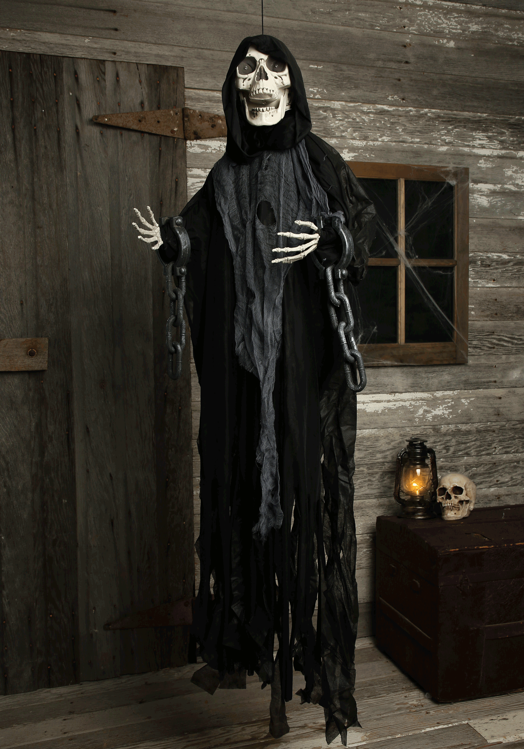 Unleash the Terror with the Animated Hanging Reaper in Chains!