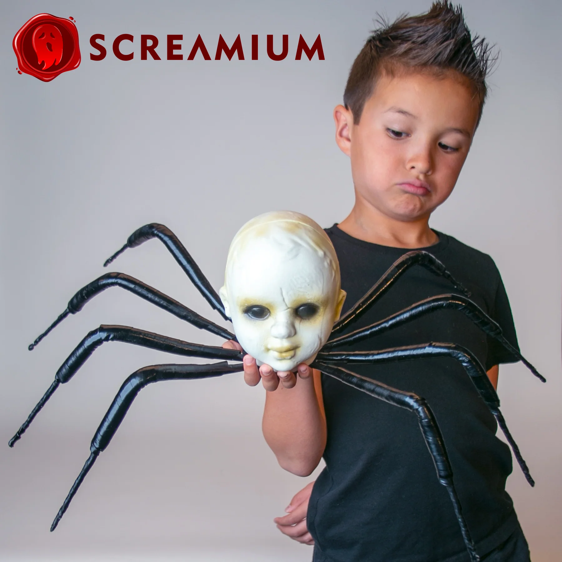 Spawned from a giant egg sack of Baby Head Spiders, this menacing creature is sure to cause arachnophobia AND fear of monster babies. An amalgamation of the most horrific kind, the Baby Head Spider makes a scary Halloween decoration that will shock and startle all visitors to your home or office this season. Simply dangle him over the candy bowl and watch trick-or-treaters eyes open wide in�terror at this strange curiosity.