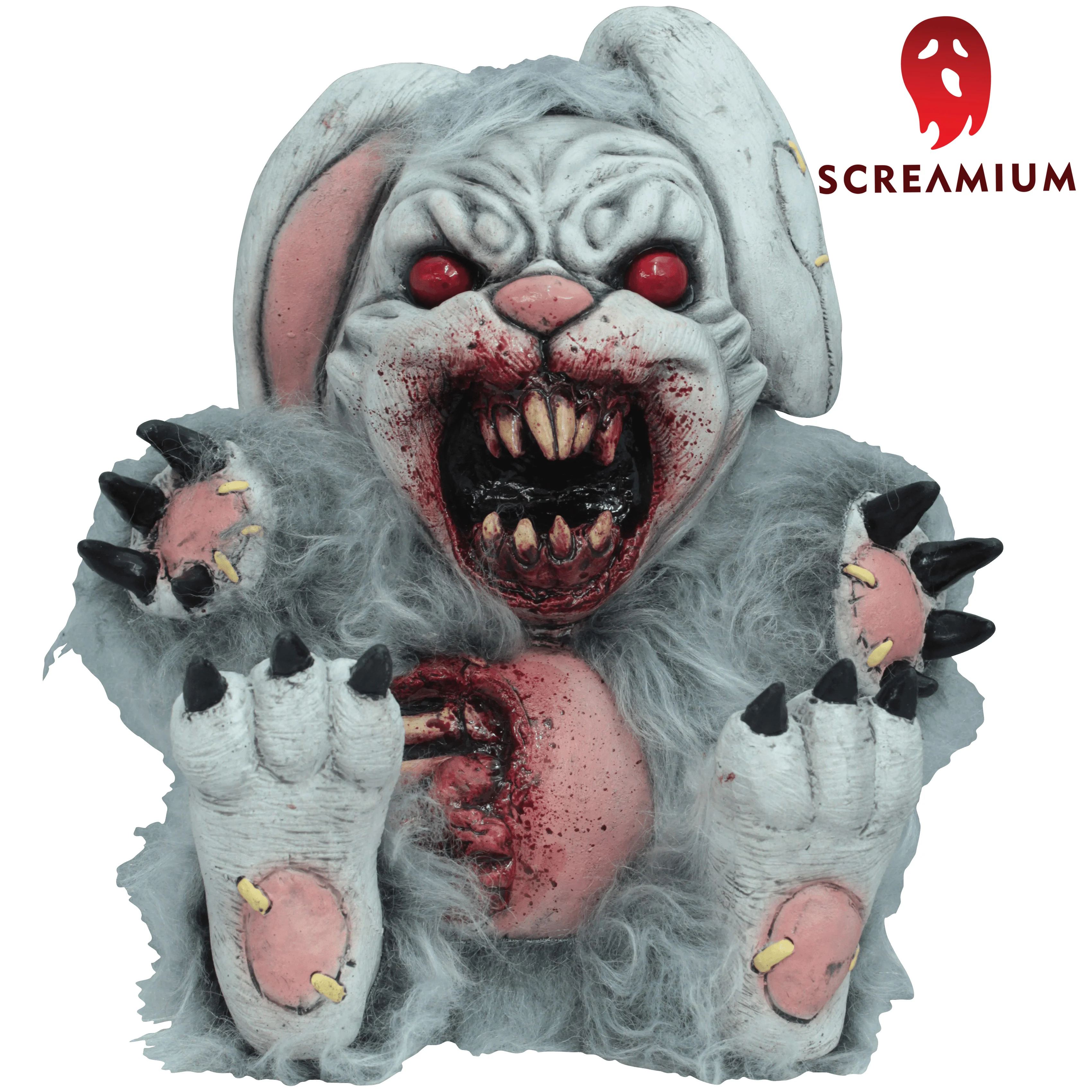 Experience the horror of the Monster Bunny. He's bad, VERY BAD. Featuring ferocious fangs, sharp paws, and demon-red eyes, this rabid rabbit is no Thumper. In fact, we think he may have eaten Thumper AND Bambi. The perfect accent for your home this Halloween, the Bad Bunny will guard your candy dish and your vegetable bowl.