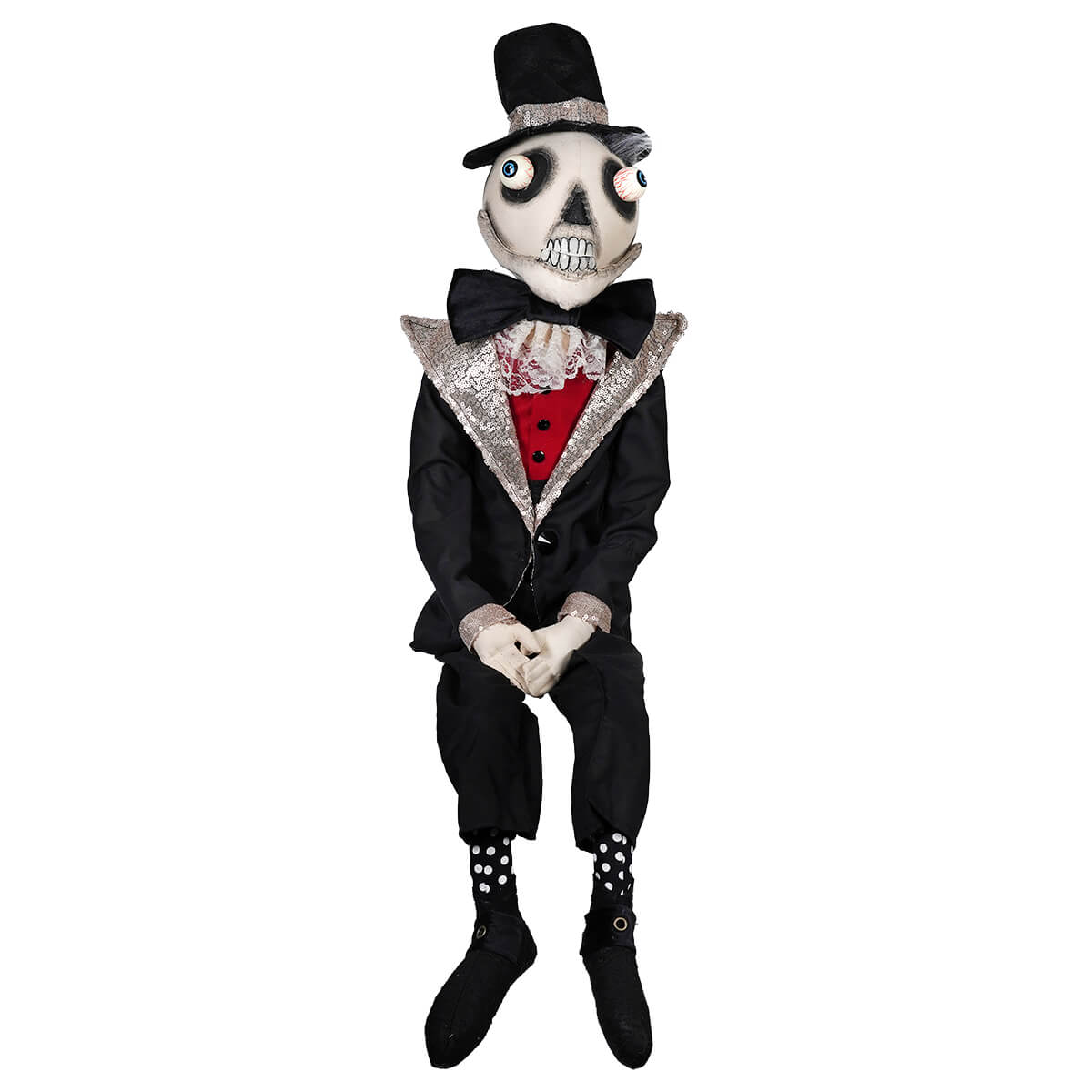 Step right up and get ready to be spooked with the skeletal Bates Figure! Standing tall at a spine-tingling 38 inches, this dapper skeleton is ready to add a touch of the macabre to any Halloween décor. Designed by the incomparable Joe Spencer, this character has personality dripping out of its black bowtie and slick top hat. Not scary enough for you? Try not to make direct eye contact — those bold bulging eyes are sure to draw even the bravest souls in! This guy is the perfect way to give your haunted house or other decor an unforgettable centerpiece. Whether you're decorating for a party or just want to add something special to your living space, Bates Figure will provide great conversation and lots of creepy fun!