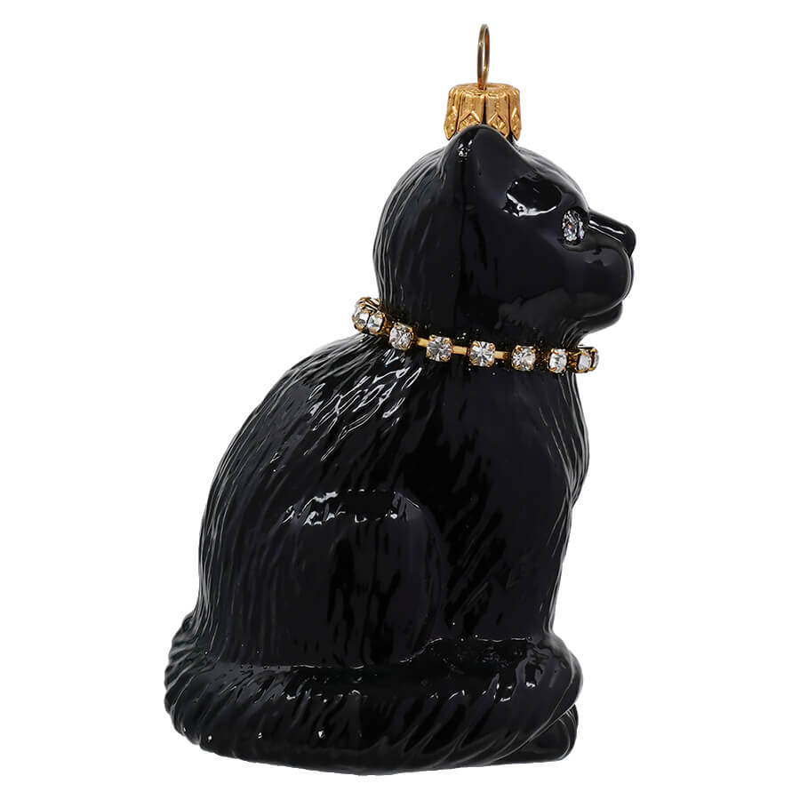 Meow-ve Over Halloween Decorations, there's a New Black Cat...ornament in town! Give your holiday decor some serious panache. With a fun design, shiny enamel black paint and jeweled details, this handcrafted ornament is purrfect for all the kitty cat fans out there. Adding an extravagant aesthetic to the design, a sparkling jeweled necklace and glittery eyes, will make it so you won't be able to resist adding it to your tree. Don't let this meow-gical addition slip through your claws – get your paws on our charming Black Cat Ornament!!!