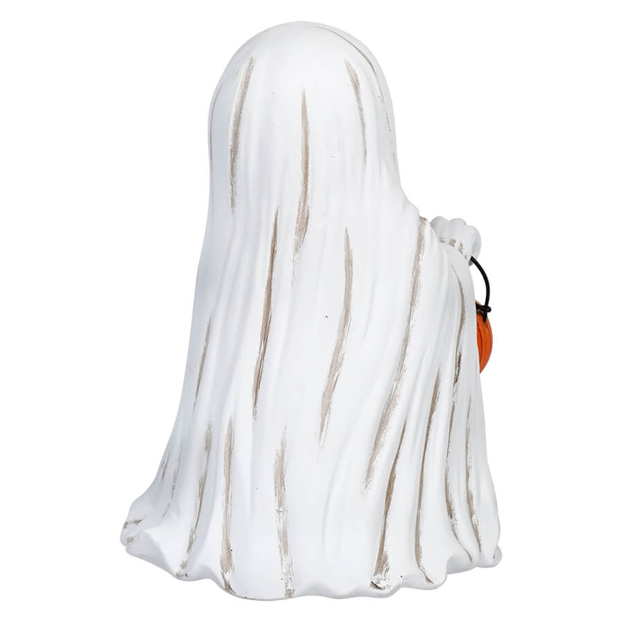 Dressed head to toe in a flowing white resin sheet, the Christopher James Ghost exudes a charmingly spooky aura. His big round black eyes add an adorable touch to his hauntingly cute expression. Clutching his pumpkin bucket in his right hand, it's evident that he's a seasoned trick-or-treater, ready to fill his bucket to the brim with delicious Halloween treats.