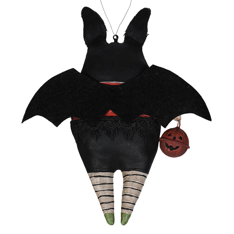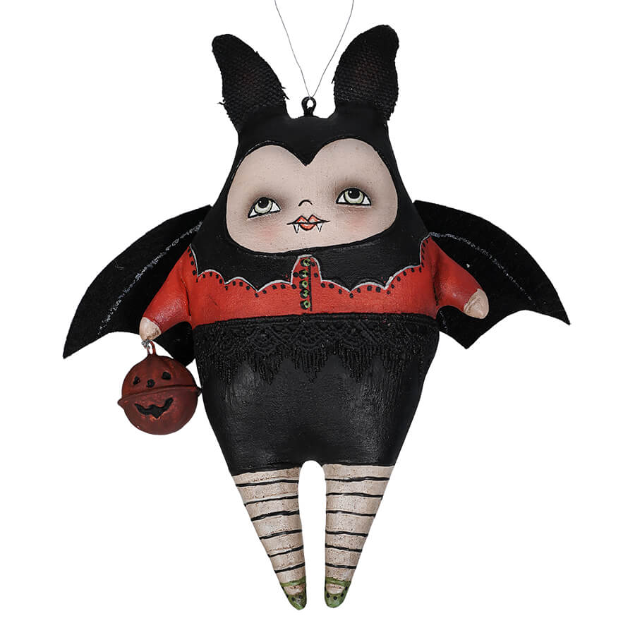 We adore this ornament collection, not only are they as cute as can be, but those expressive faces just draw you to the Halloween tree you will hang them on! Curella Bat Ornament, oh my! What can we say about those teeny tiny little fangs, smiling eyes, bat wings and ears...we've got it...they are bloody perfection! Of course you can hang this fun ornament on your Halloween tree, but it would also look fabulous on a mantel garland draping your fireplace. Cruella Bat is made of hand painted resin, she is a hard ornament, not squishy like fabric. There is just so much detail on this ornament!