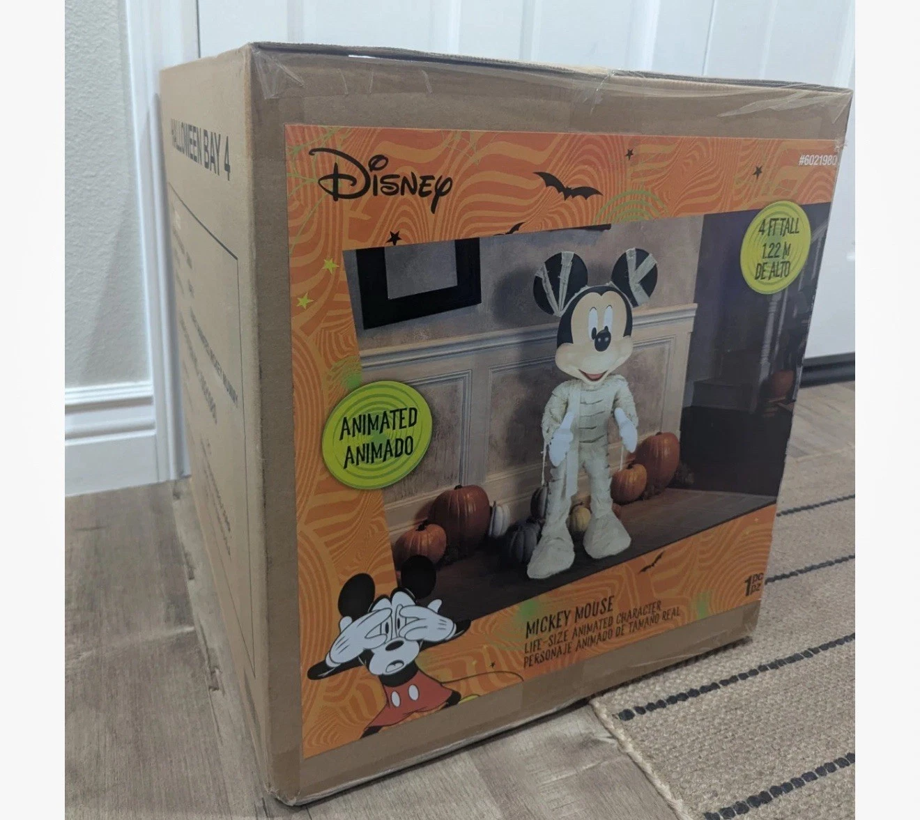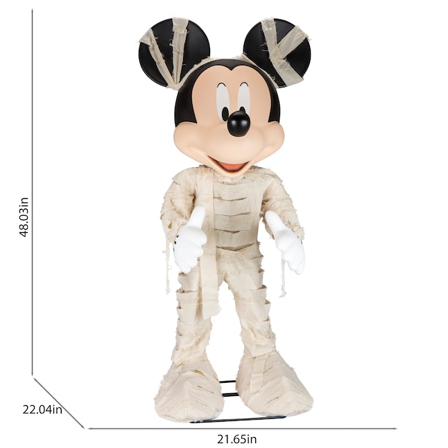 Kick up the fright factor with the life-size Mickey Mouse mummy animated figure! This Halloween animatronic delivers the ultimate spooky experience for your guests and visitors. Perfect for fans of Disney, our animated Mickey mummy is dressed in classic mummy fabric. Mickey moves his head and arms as he dances side to side to the tune of "Monster Mash". Our 4-FT Mickey Mouse decor collapses for easy storage and includes everything needed for setup.