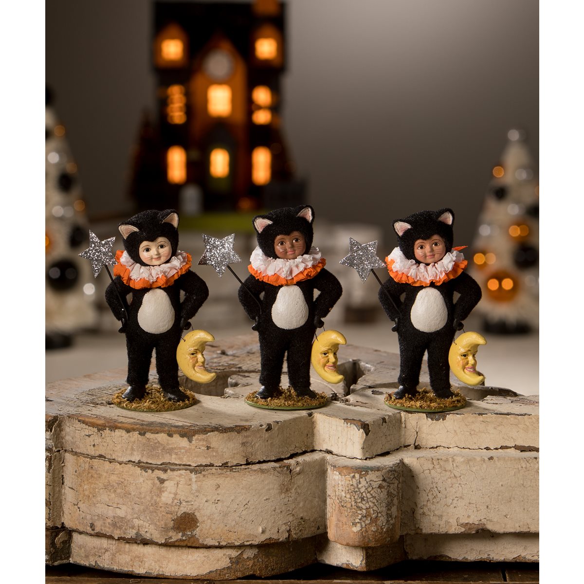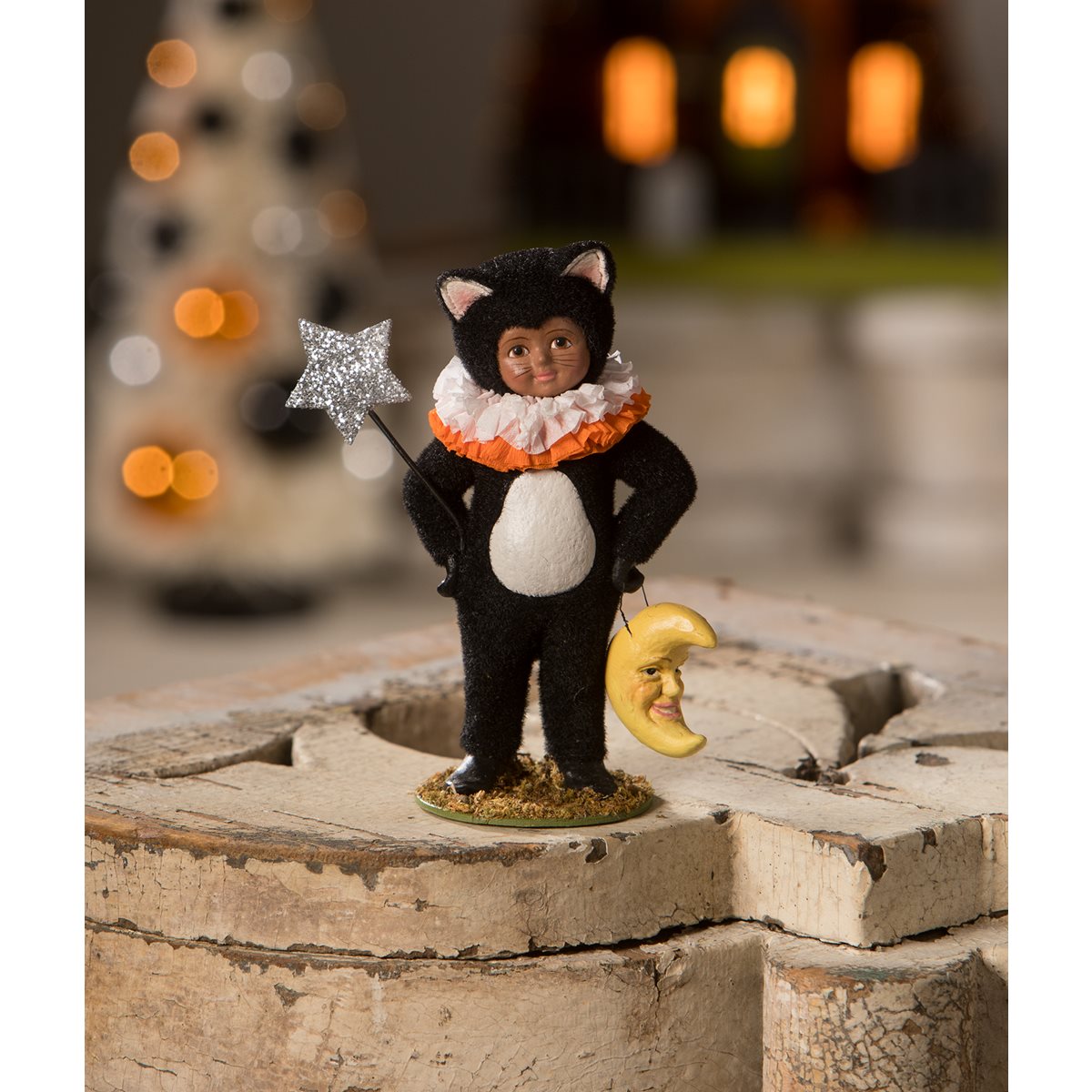 This remarkable figurine stands as a testament to Bethany Lowe's artistry and attention to detail. Whether showcased as a centerpiece or added to your treasured Trick or Treaters collection, Dressed Up Dessi Cat is certain to bring joy and charm to any space. Immerse yourself in the captivating world of Bethany Lowe with this exquisite creation, and allow Dessi to mesmerize you with her delightful presence and magical allure.