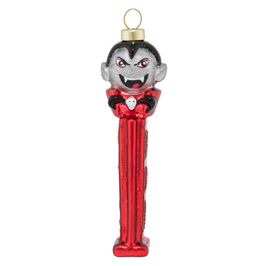 PEZ dispensers are a collectible item and now we have this glass ornament that will certainly be a fun addition for anyone that loves or collects PEZ! So, welcome this Fangs A Lot PEZ™ Dracula Ornament onto your Halloween tree or mantel garland! This official PEZ™ ornament is sure to bring the fun into your holidays. It's perfect for those who need just a bite of something special. This "batty" ornament is truly delightful and eye-catching, featuring an adorable vampire ready to join the festivities. The detailing on this piece is devilishly exquisite, giving it a creepy yet fun look. He even comes with two fangs in case there's not enough fright during the celebration. Whether it's trick-or-treating or decorating your home, Fangs A Lot PEZ™ Dracula Ornament will give you a vampire hug like no other! Don't miss out on this wicked gift before it gets snatched away for good! Collect all of the glass ornament PEZ dispenser ornaments, including the Not-so-Wicked-Witch and Pumpkin for a really fun addition to your Halloween tree!