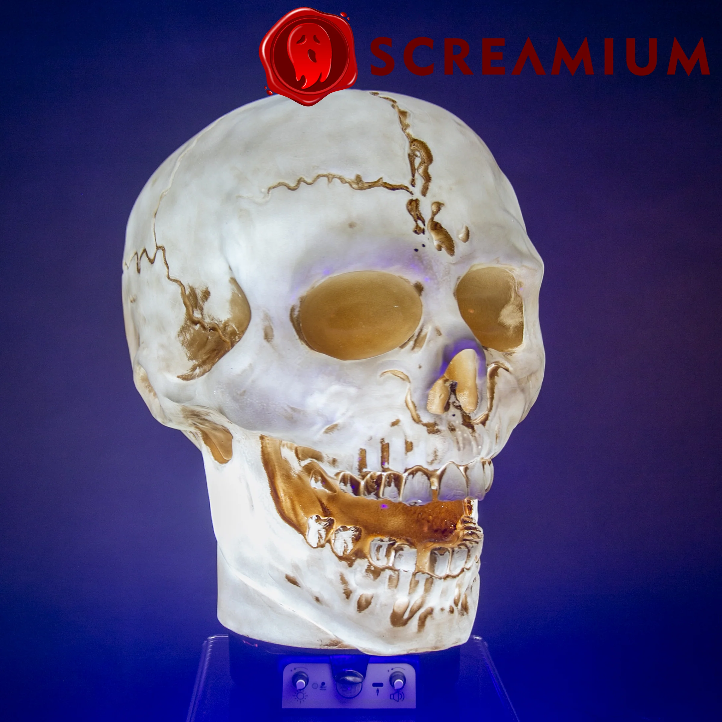 Provide your own lighting and effects with this static Giant Skull Sculpture to create the ultimate Halloween decoration for your home or business. Featuring scary details such as sunken eye sockets and big, gnarly teeth, you'll experience the amazing artistry of this monster masterpiece when viewed in person. Formed from translucent polyresin material in a roto mold and hand-painted by highly skilled airbrush artisans, each skull is a work of art unto itself!