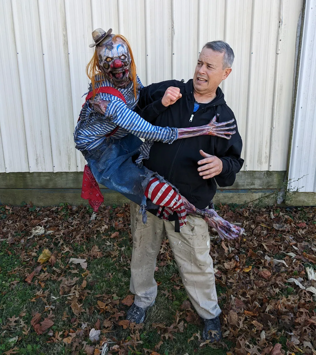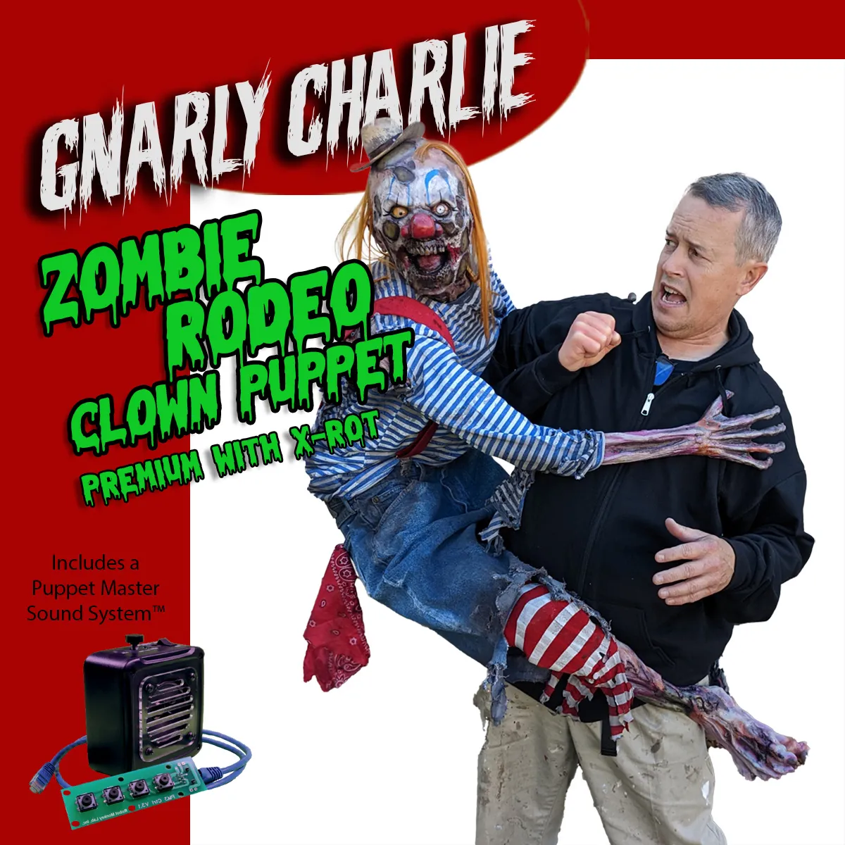 Gnarly Charlie Premium version with X-ROTT is Hulu's most realistically detailed and gory of all our zombie clown puppets. A great haunt attraction addition that can be used in the attraction, to entertain queue lines and to promote your attraction at other events and in parades.