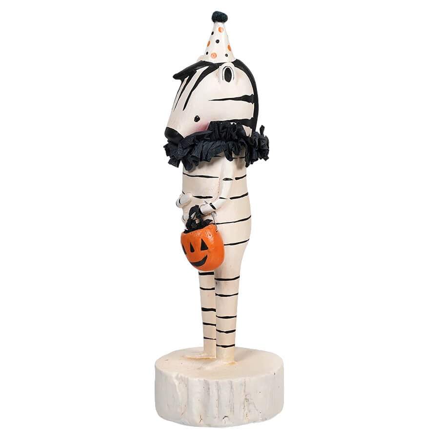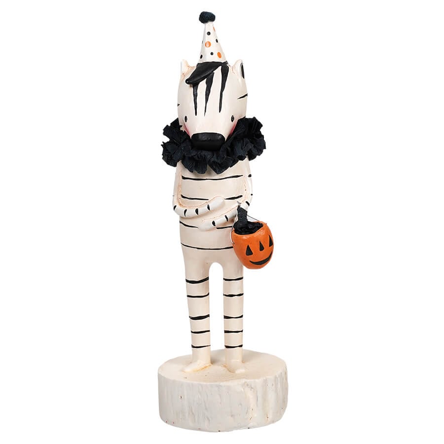 As Halloween is approaching, it's a good chance to liven up your decor with some fun and distinctive items. Just take a glance at this cute Halloween Zebra! It's a lovely figure crafted from hand-painted resin, sporting a black crepe paper collar and a polka-dotted party hat adorned with a pom-pom. He is all set to go trick-or-treating with his jack o' lantern bucket. Plus, you can bring his cute Halloween animal friends Ellie, Rhino and Hippo along! Get the most adorable Halloween creatures together ever and make this Halloween even more memorable!