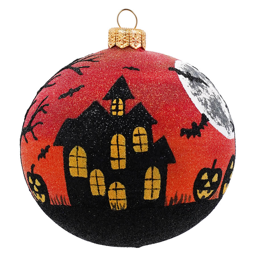 Are you thinking about adding new, spooktacular ornament to your Halloween tree? Then you might want to look at the Haunted House Ornament by Thomas Glenn Holiday! This handcrafted, mouth-blown and glittered to perfection ornament will bring life to any tree this holiday season. It features a full moon illuminating an eerie house surrounded by drudging shadows that are sure to scare away the faint of heart - but will be much appreciated by the brave ones who dare decorate their home with this haunting scene. A spooky addition to celebrate Halloween and add a festive feel to your home. This ornament will attract the attention of everyone who dares take a look. Get ready for a truly spellbinding experience with this truly special addition!