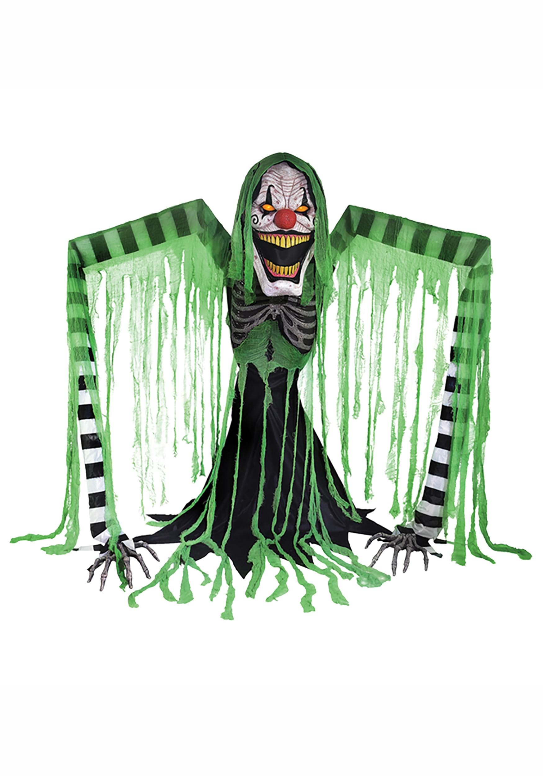 Dare to join the carnival of nightmares this Halloween? The 6 Ft. Underworld Clown Animatronic Prop is your ticket to a spine-chilling experience. Get ready to be entertained and terrorized by this macabre clown that will leave you screaming for more!