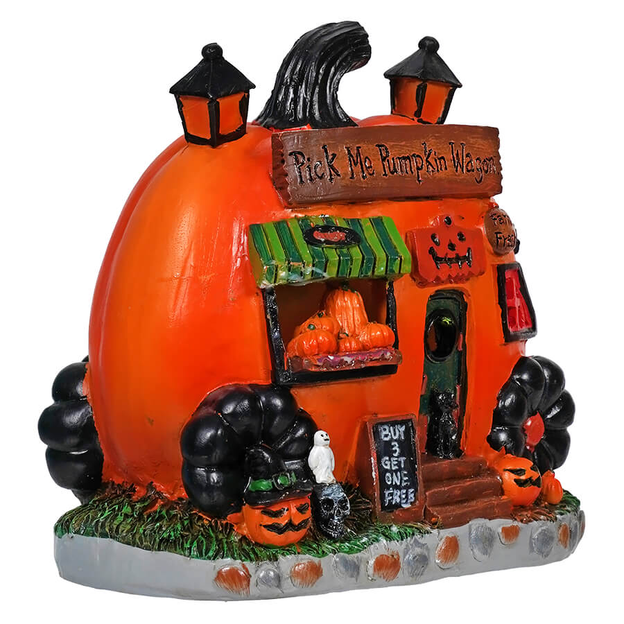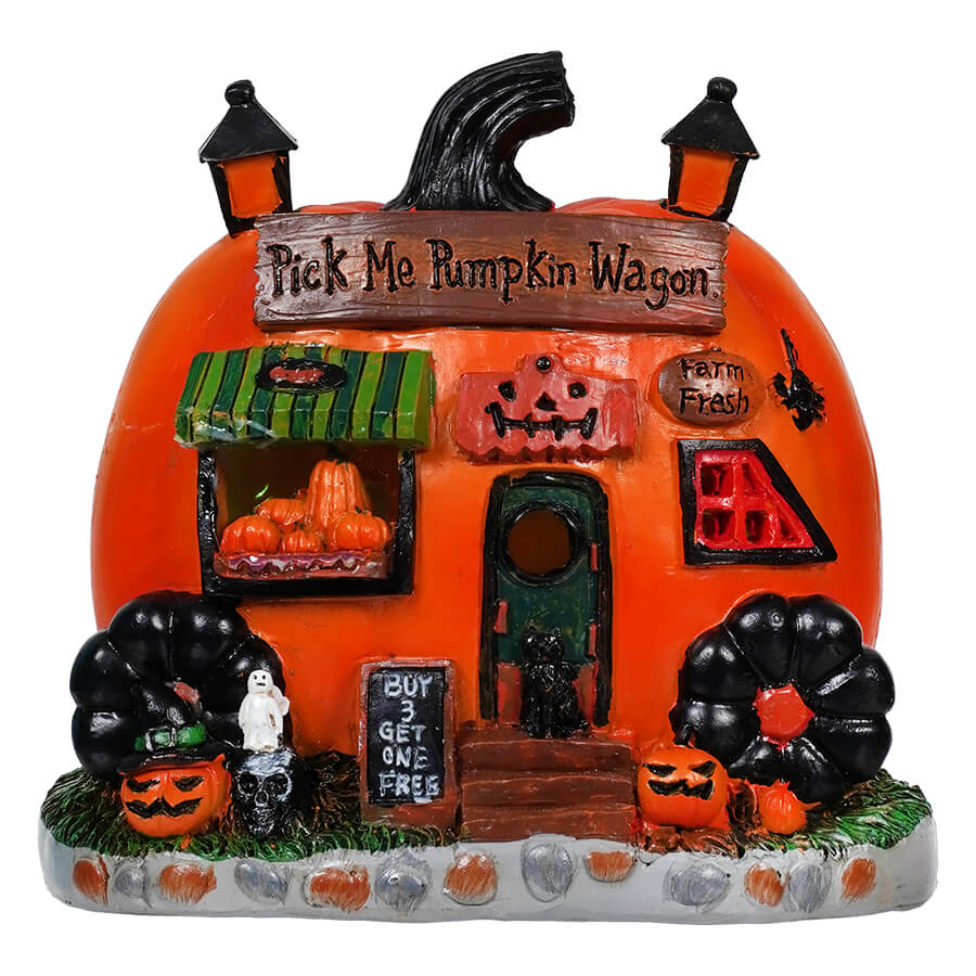 Add this Jack o' Lantern Pick Me Pumpkin Wagon to your existing Halloween village or start one with this fun piece.