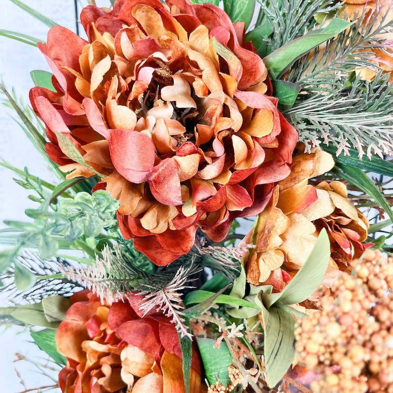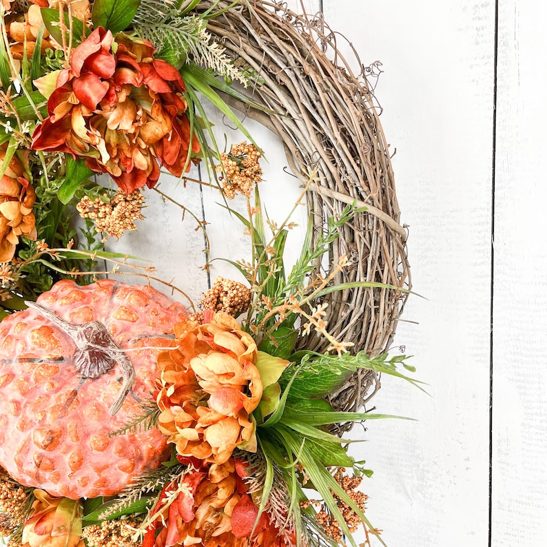 This lush and full Autumn Door Wreath is a celebration of Fall, ready to add a warm and inviting touch to any home decor.