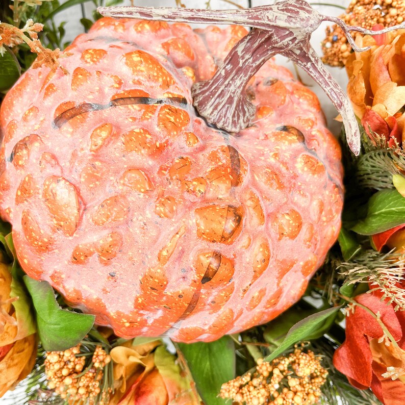 Adorn your home with this stunningly crafted Large Fall Pumpkin Wreath, a showstopper that promises to captivate passersby. The perfect accent piece for your front door, fireplace, or interior wall, this rustic Autumn Wreath not only embraces the richness of Fall but also makes an ideal housewarming gift for new homeowners.